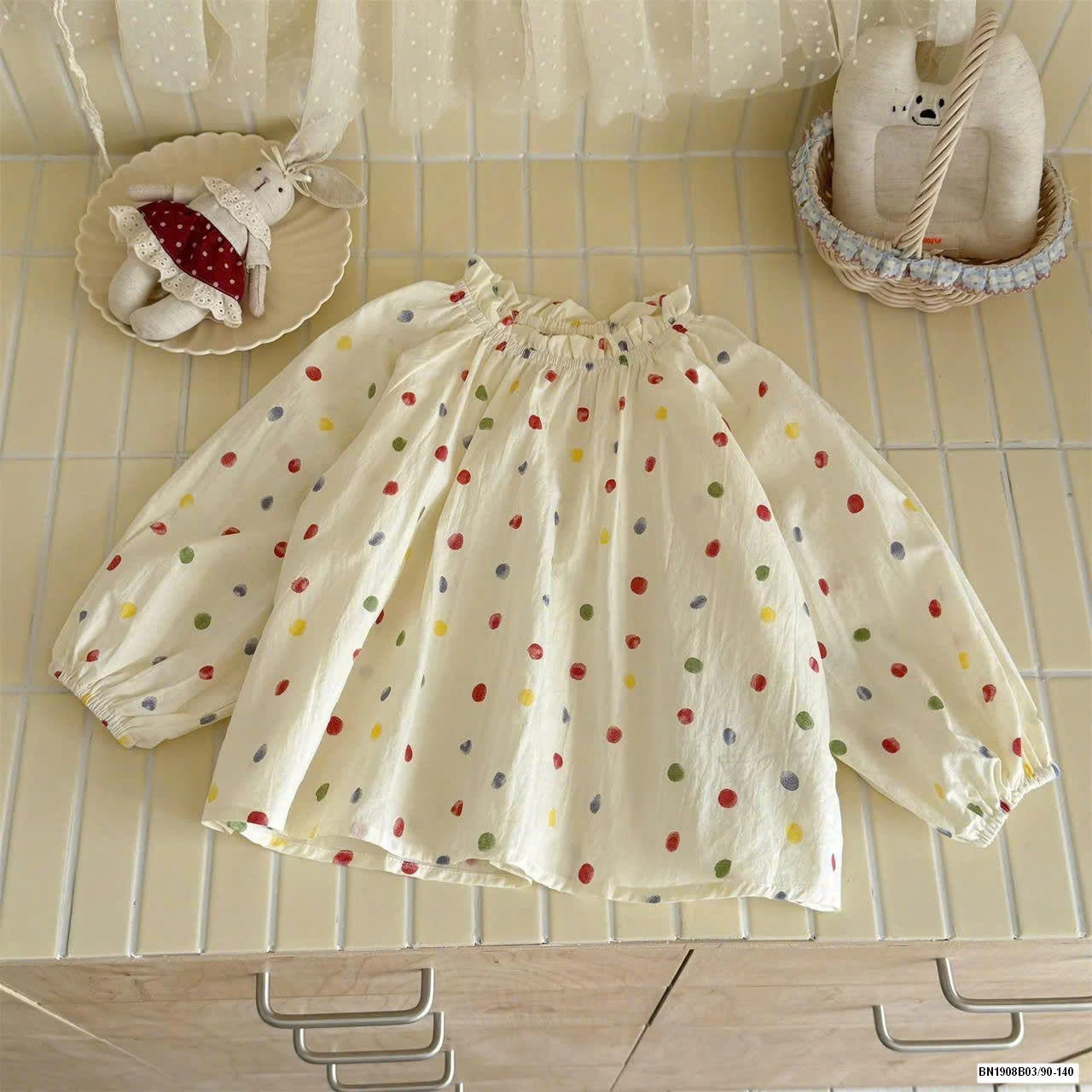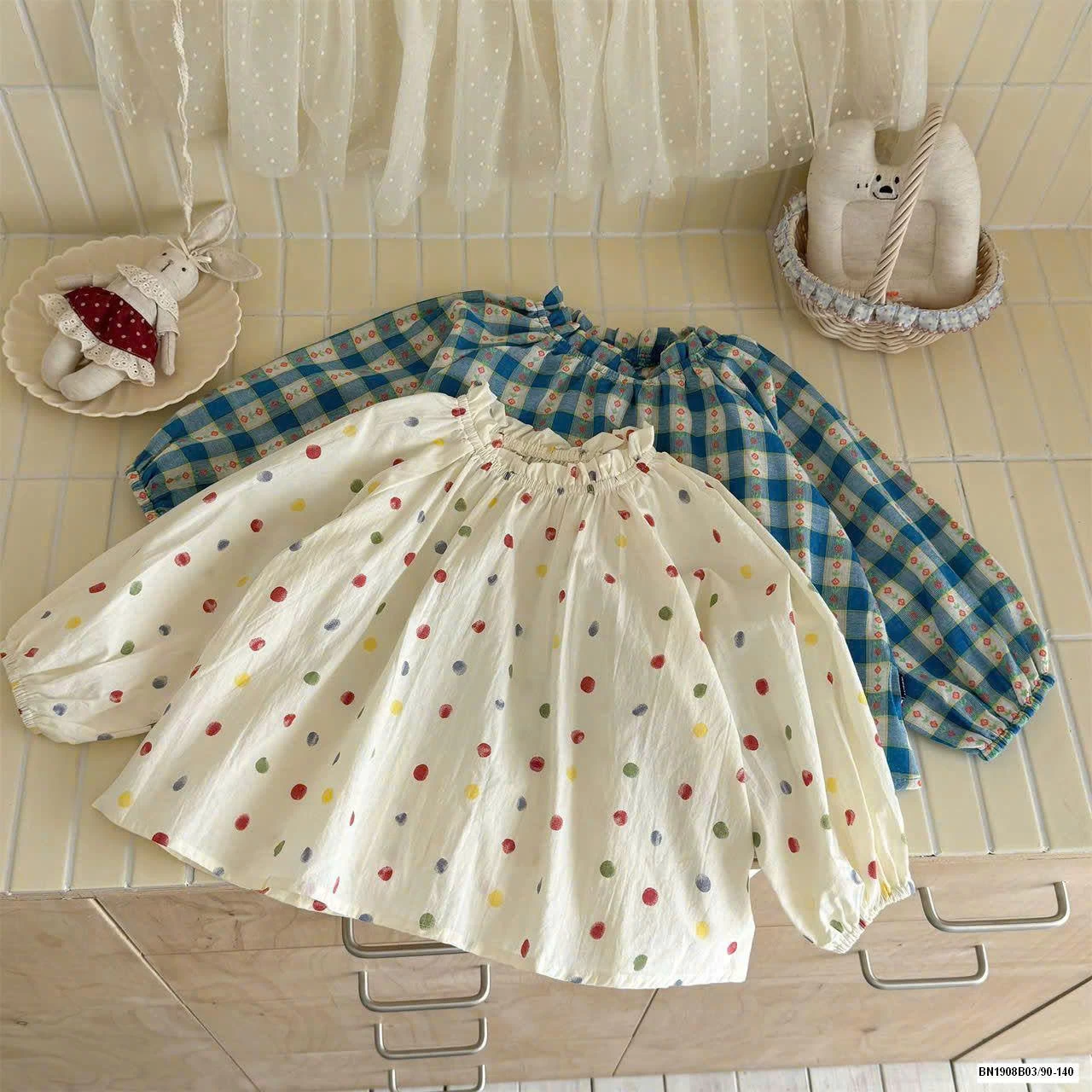 Áo cổ nơ tay hến nhà IN BLUE