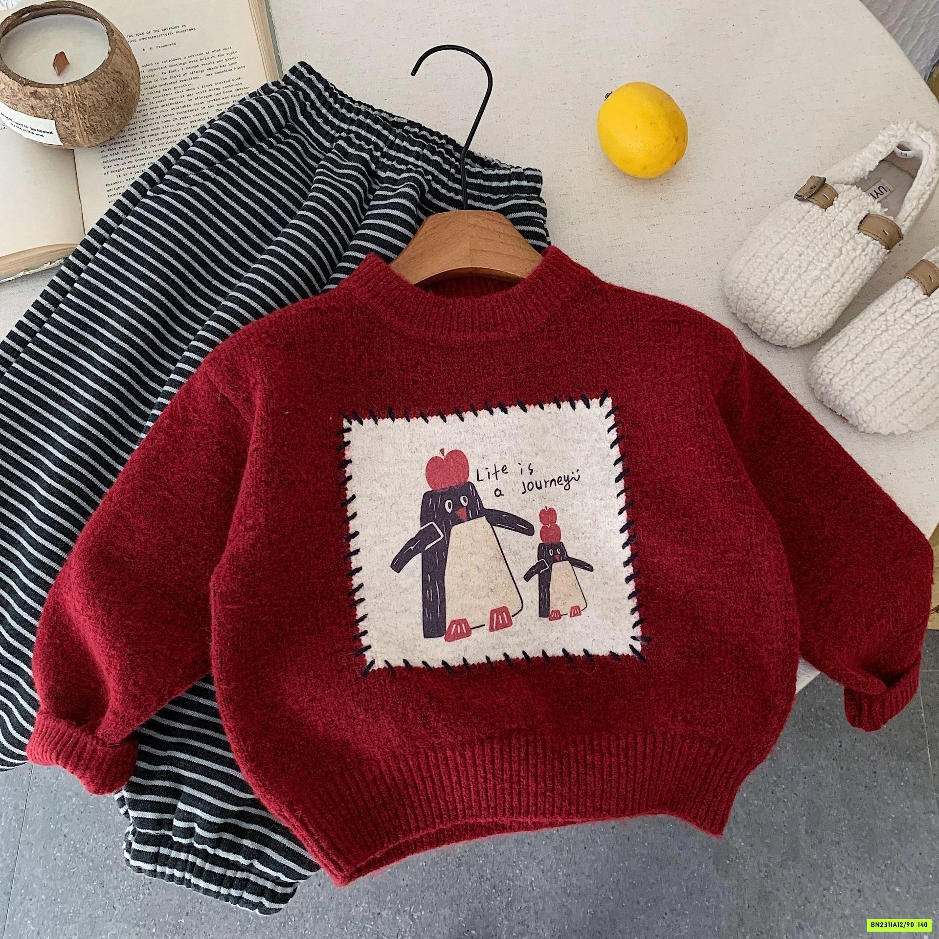 ÁO LEN ĐỎ PHỐI KẺ TRẮNG