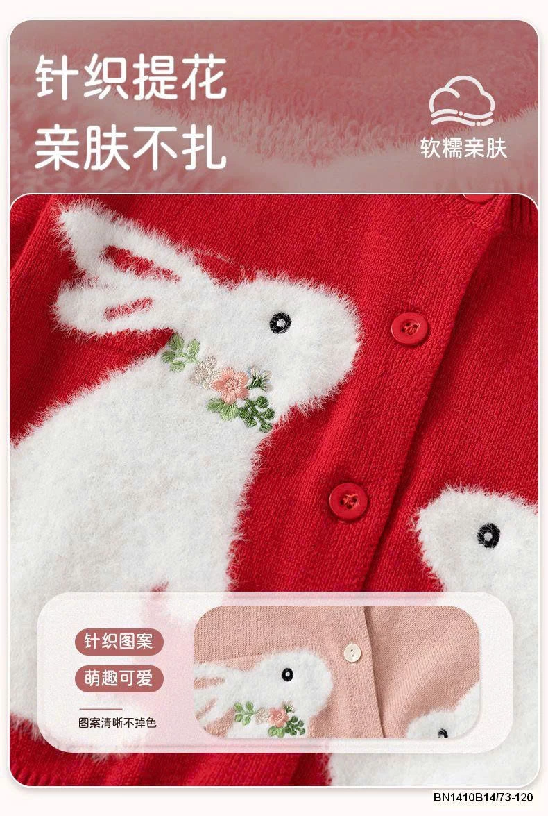 Len dệt mềm, hoạ tiết thỏ siêu đáng yêu – ấm áp và dễ phối đồ cho bé.