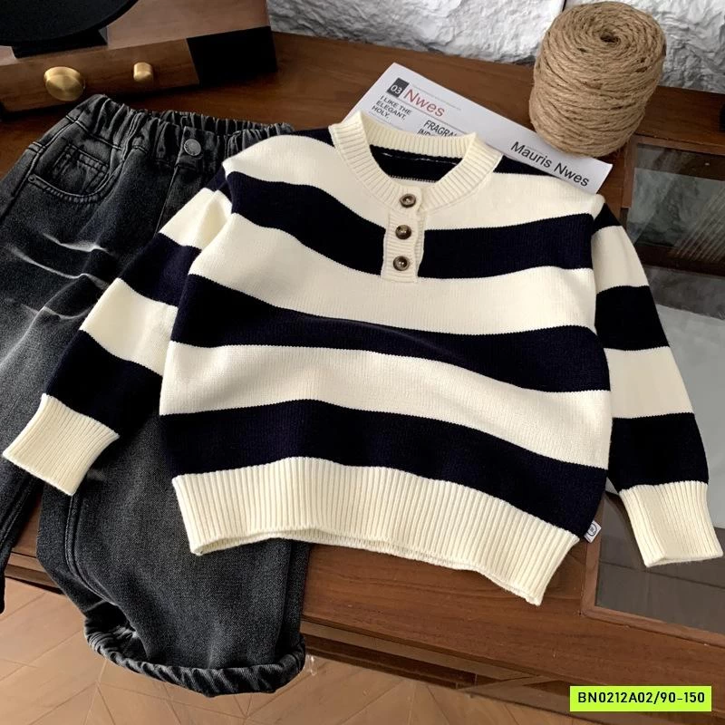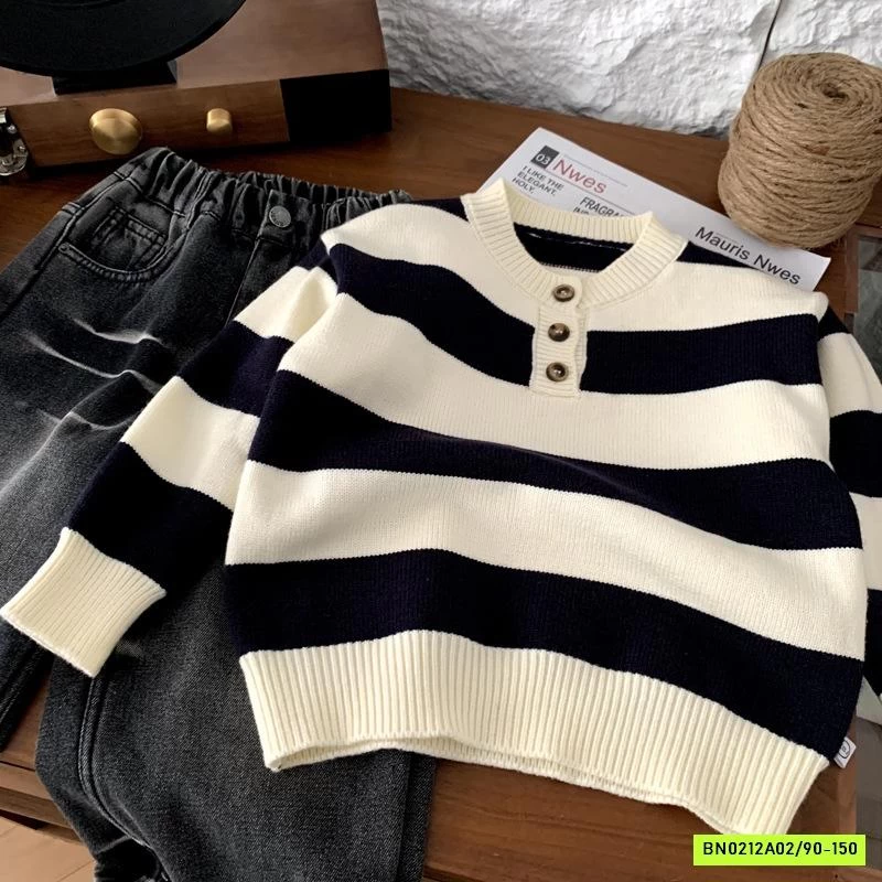 ÁO LEN KẺ TAY CỔ KHÓA