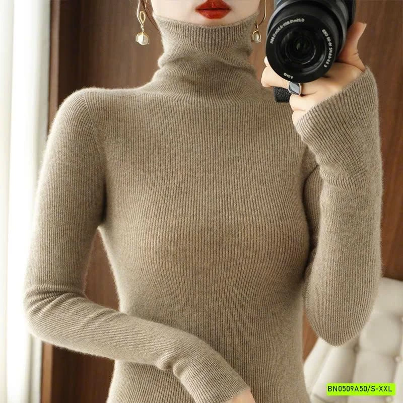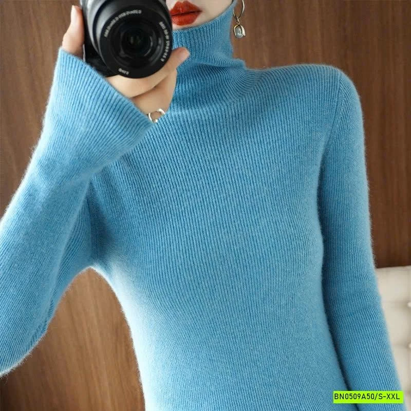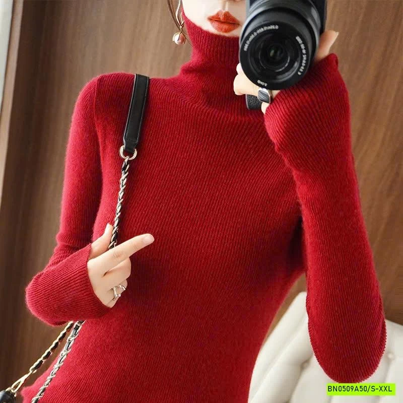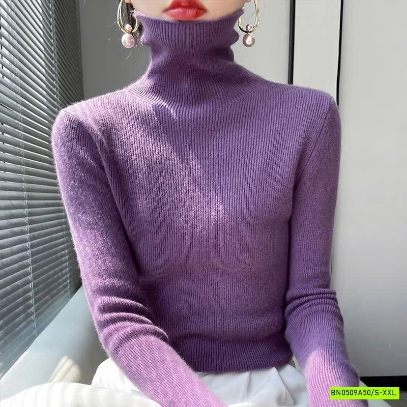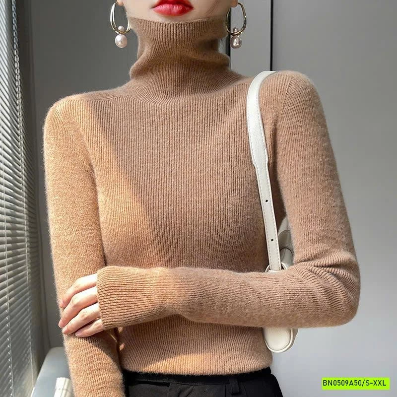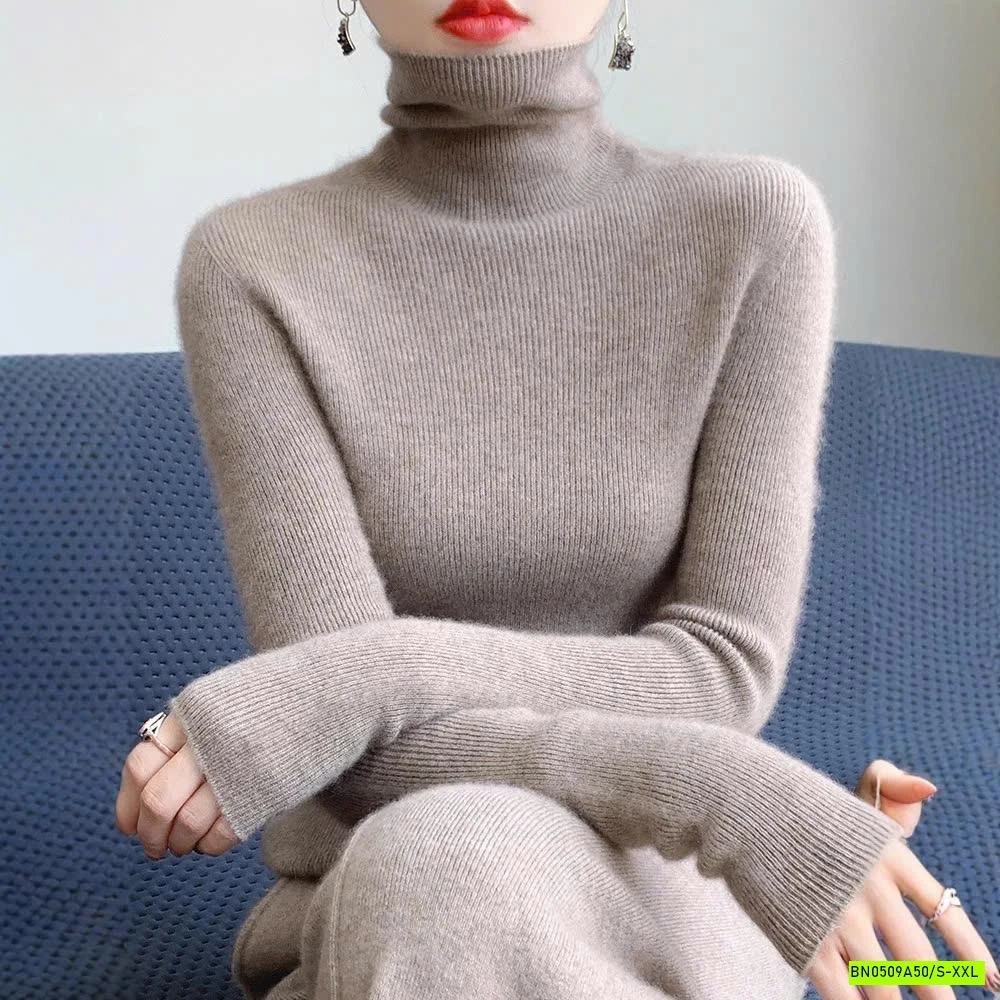 ÁO LEN LÔNG CỪU CASHME CỔ LỌ TRƠN MÀU muộn