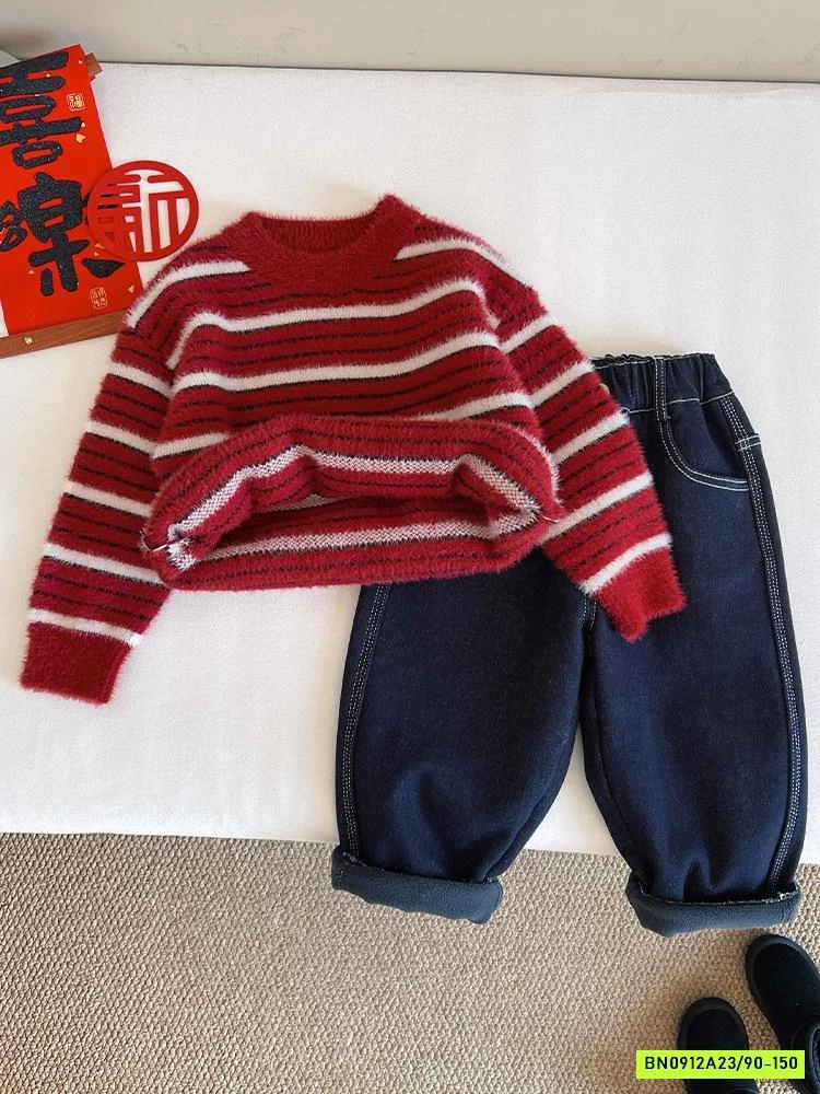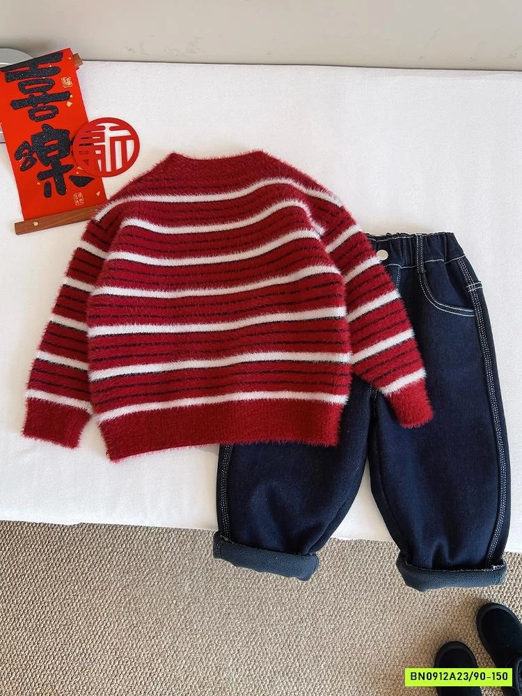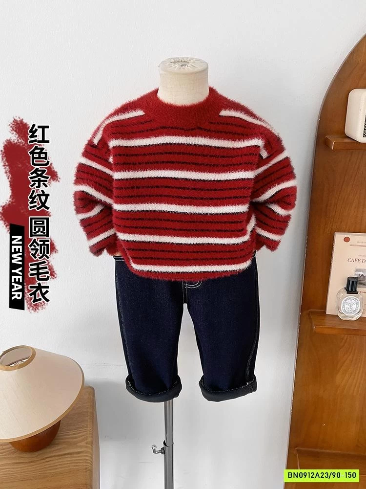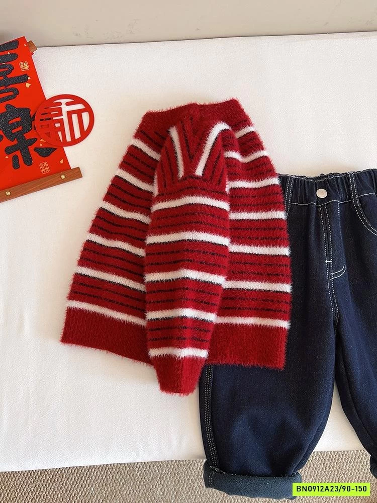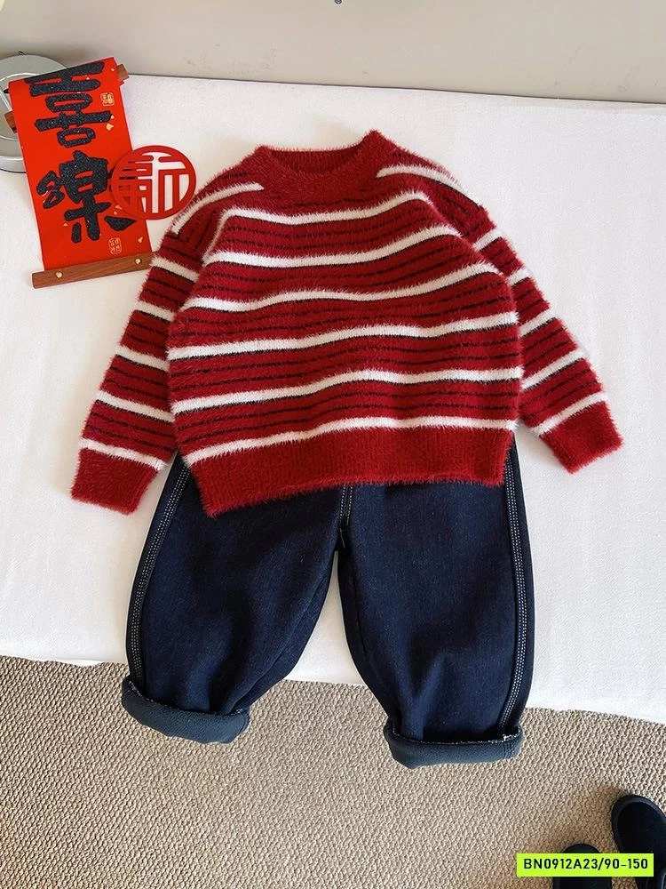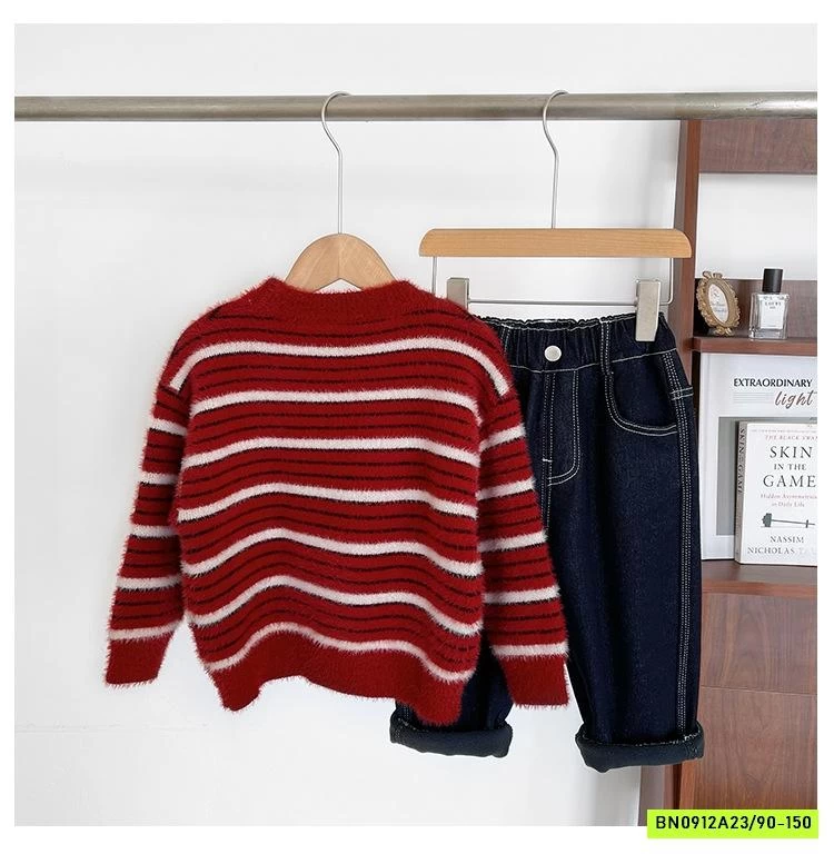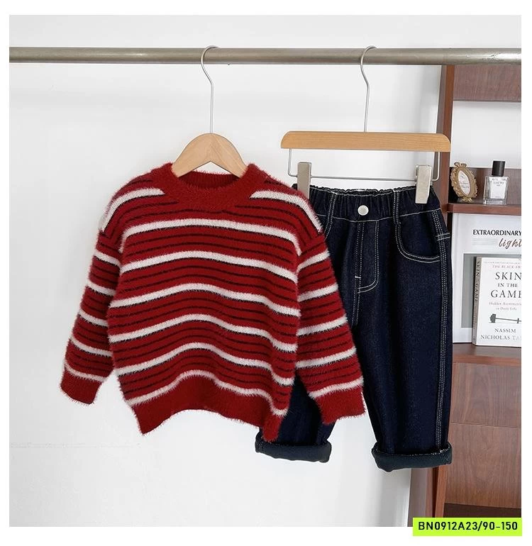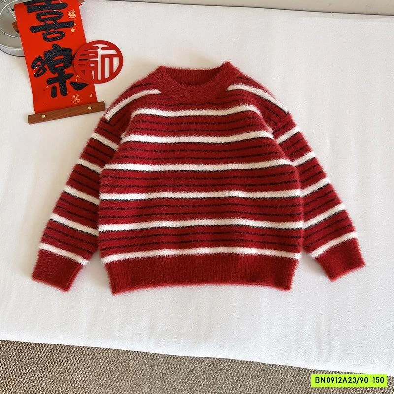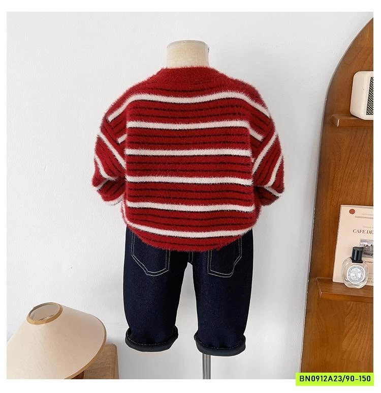 ÁO LEN LÔNG THỎ ĐỎ KẺ TRẮNG