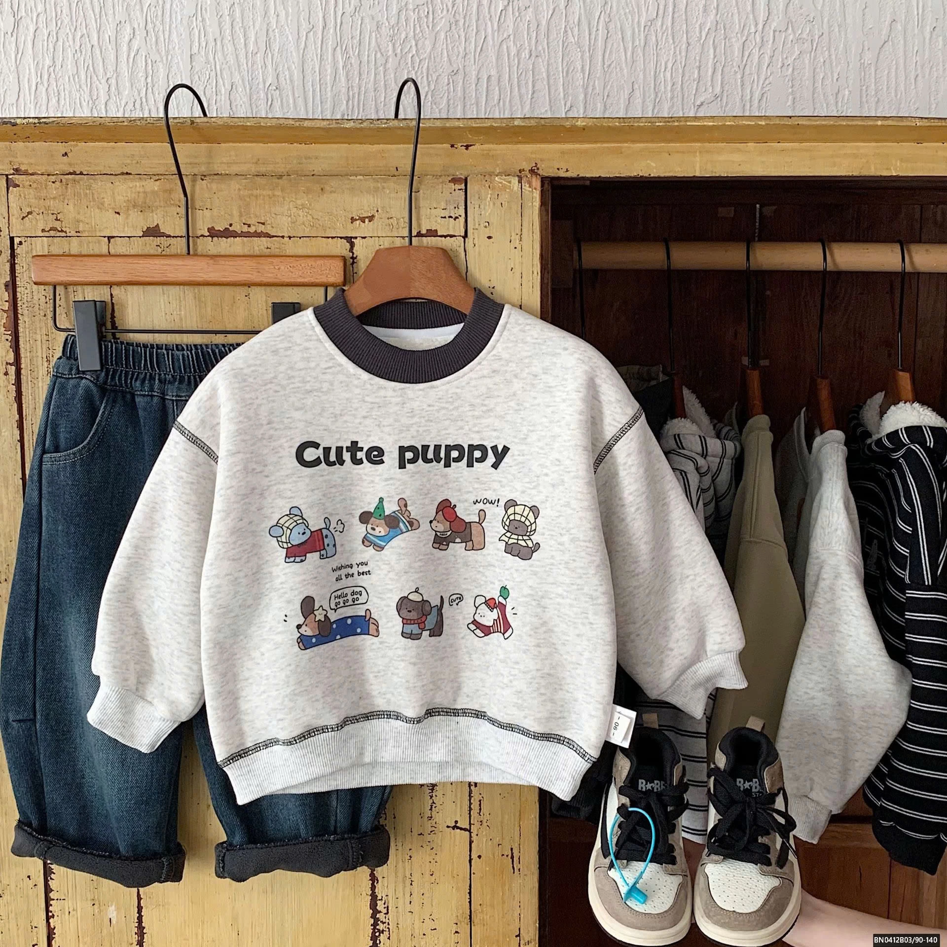 ÁO NỈ HOẠT HÌNH PUUPY LÓT LÔNG CỪU
