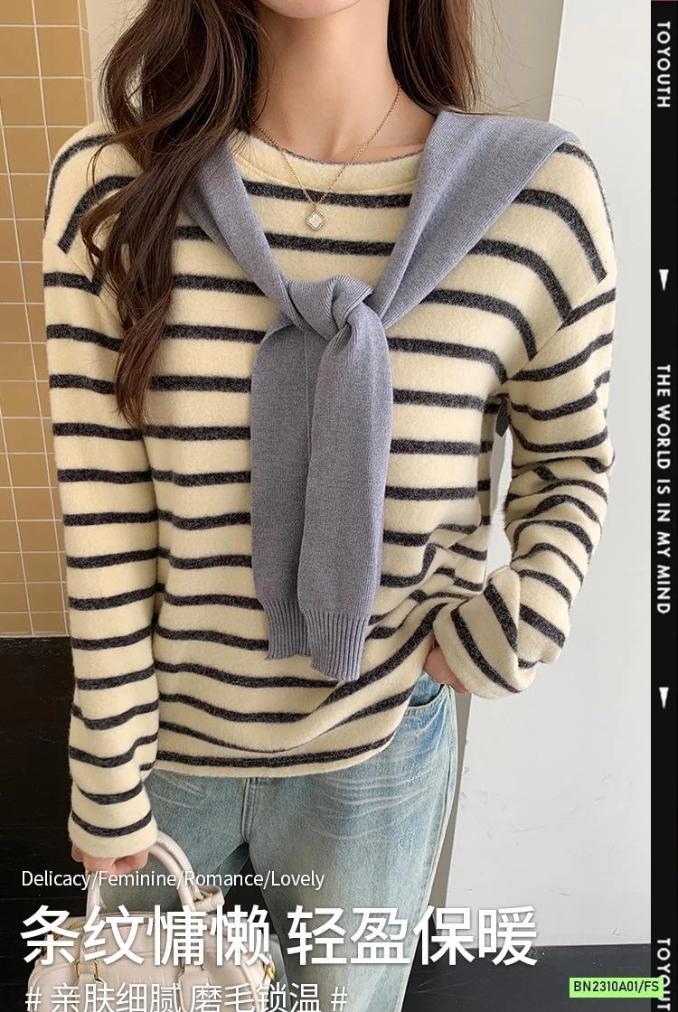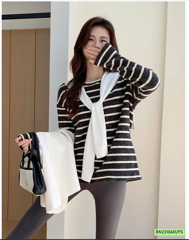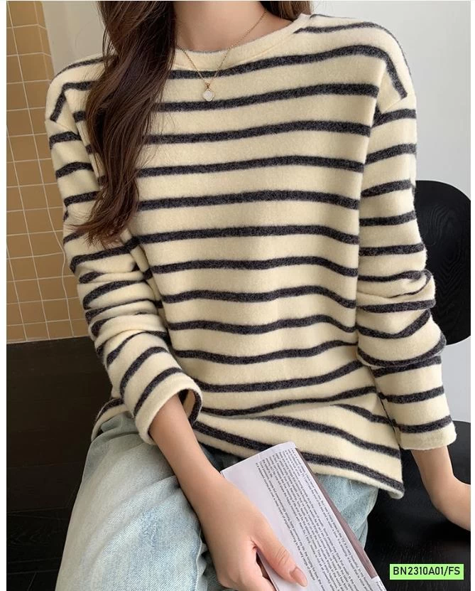 ÁO NỈ KẺ MỀM ẤM NỮ