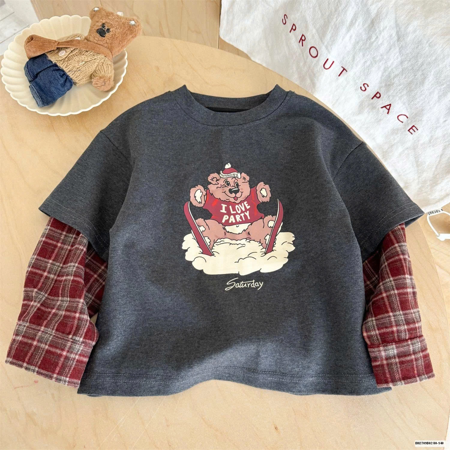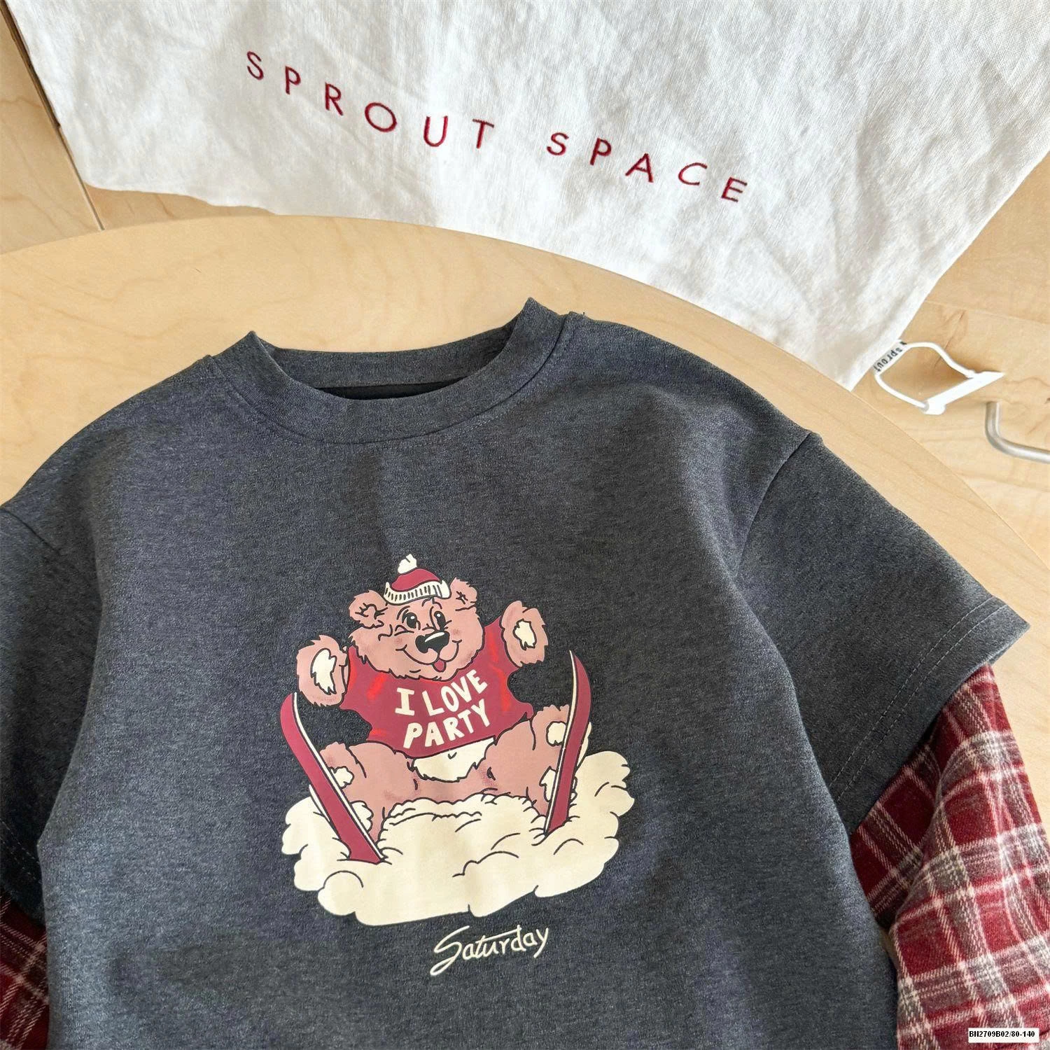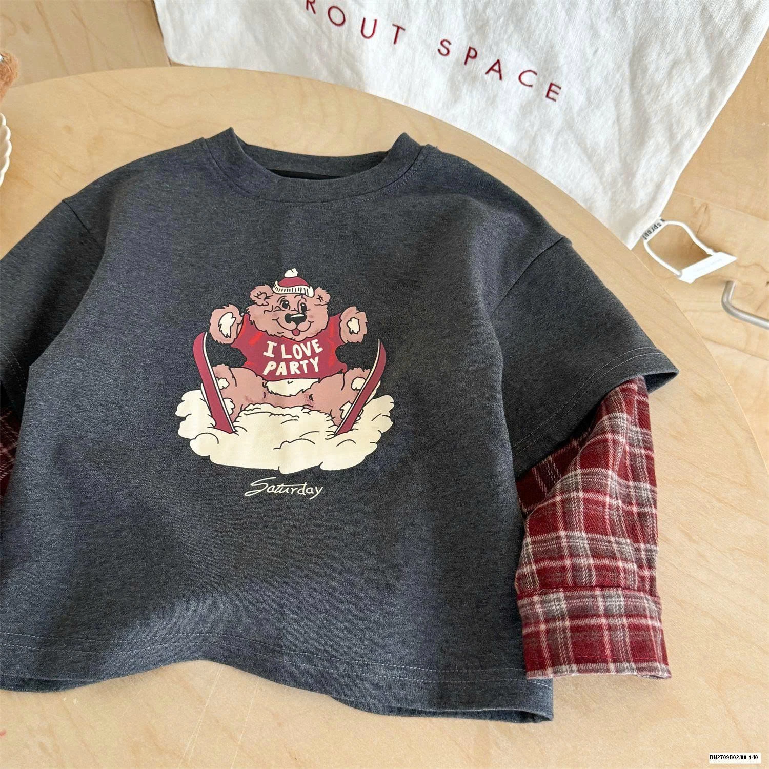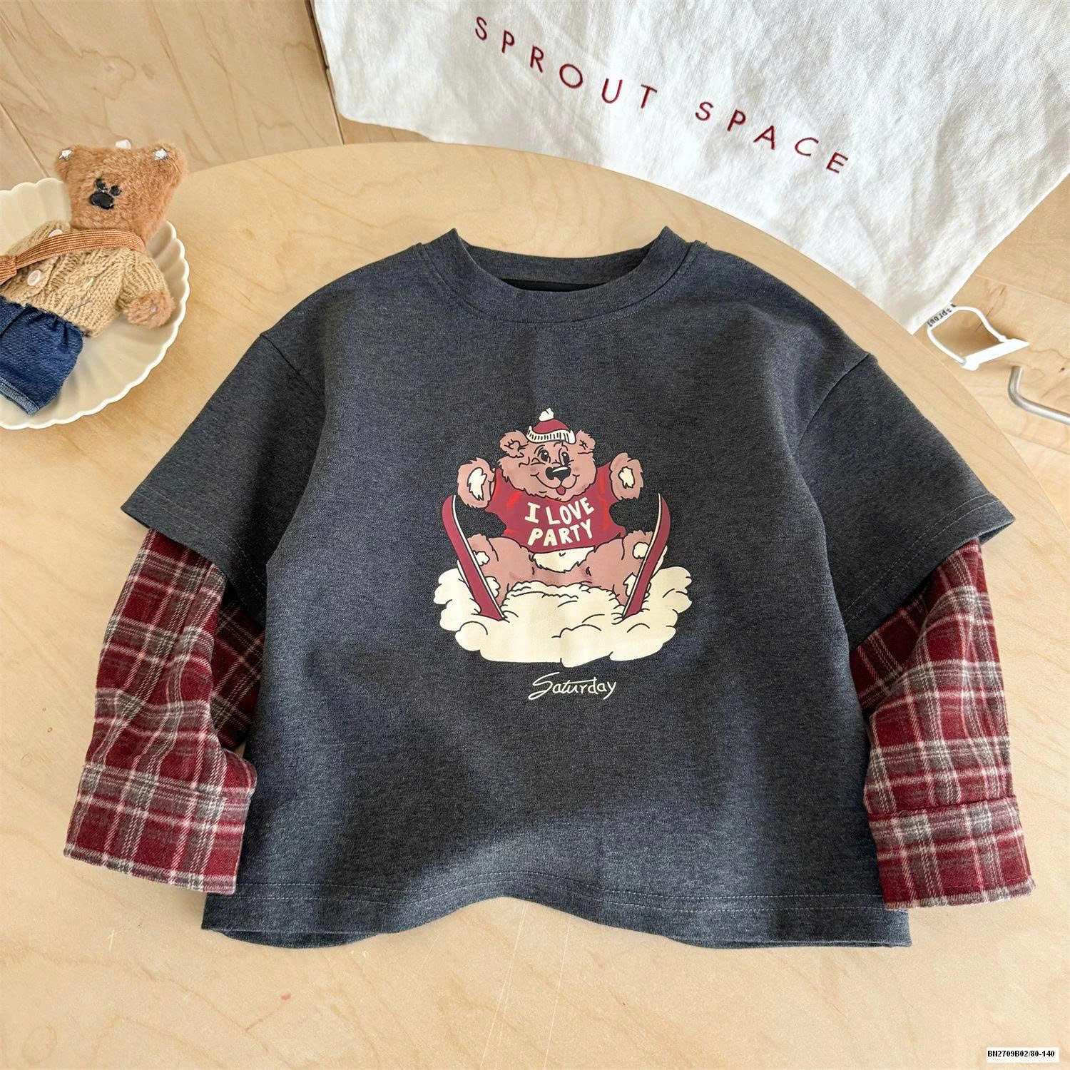 ÁO THUN GẤU PHỐI TAY CARO muộn