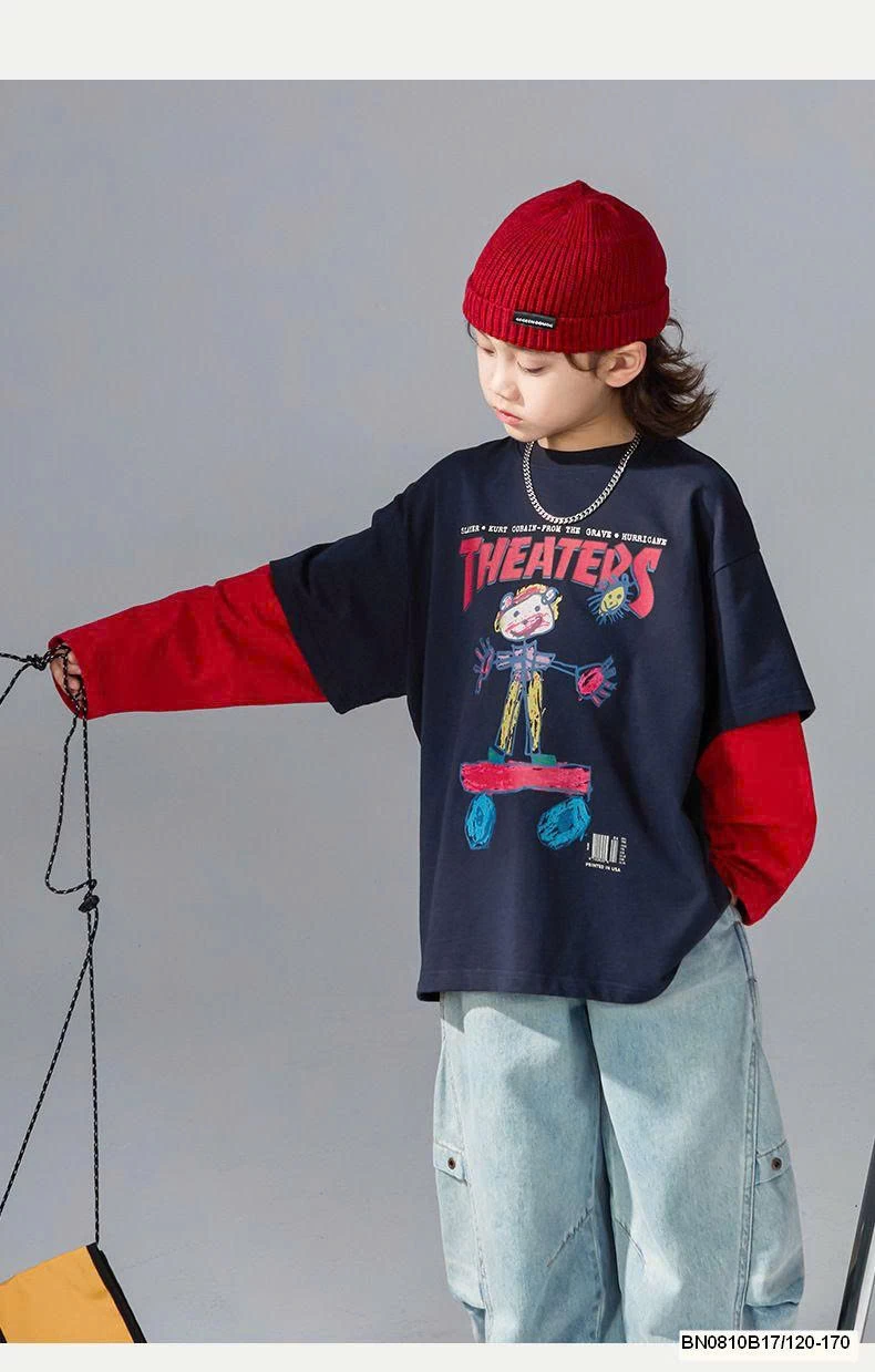 Áo thun tay nối phong cách Hàn, hoạ tiết hoạt hình dễ thương 🎨 — chất vải mềm mịn, bé mặc siêu thoải mái.