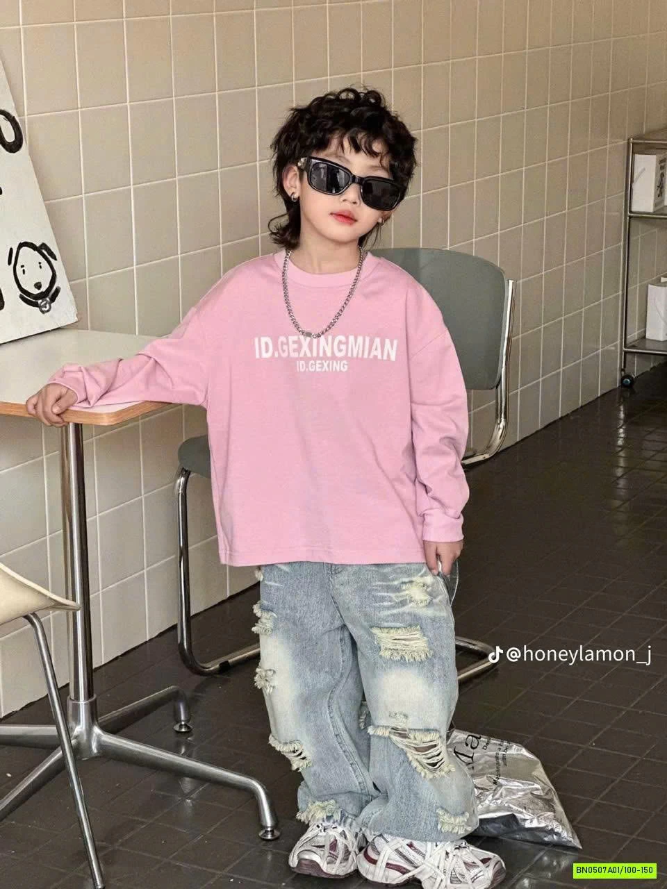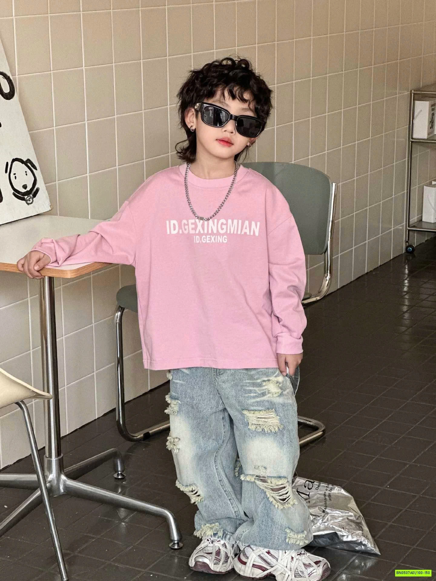 ÁO THUN HỒNG IN CHỮ DÀI TAY muộn