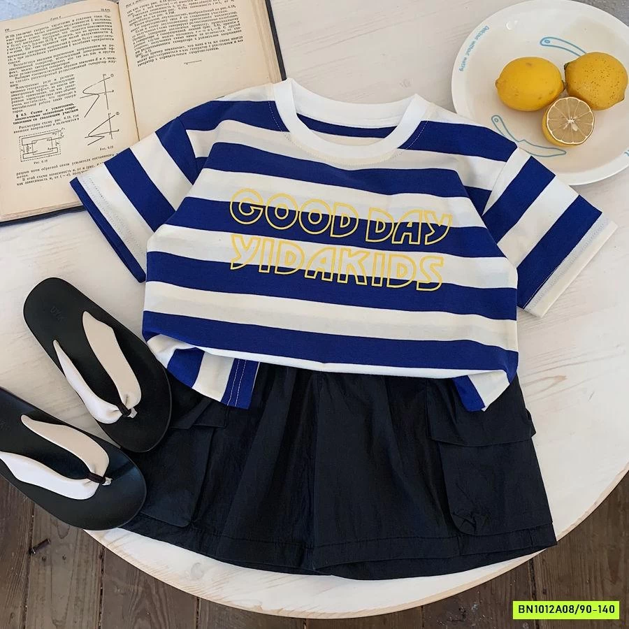 ÁO THUN KẺ XANH TRẮNG