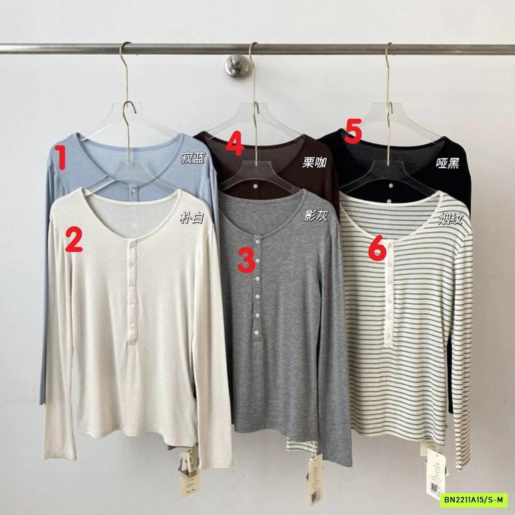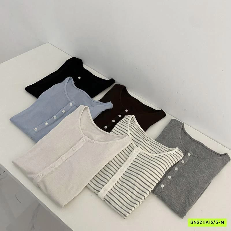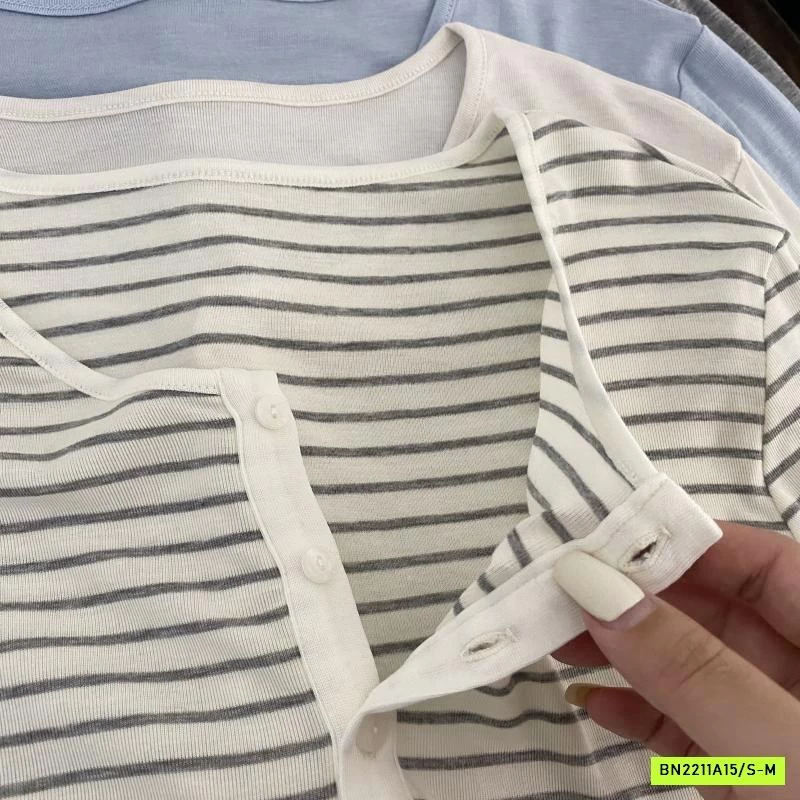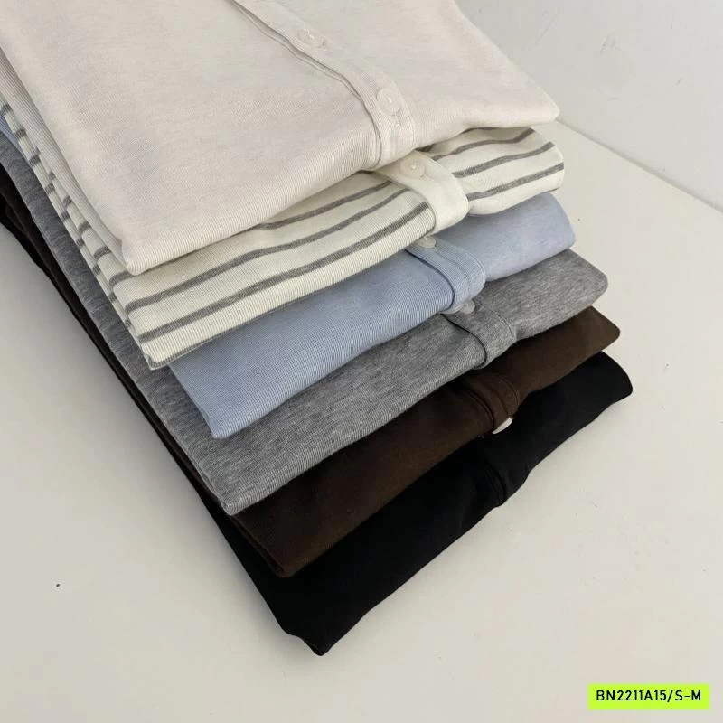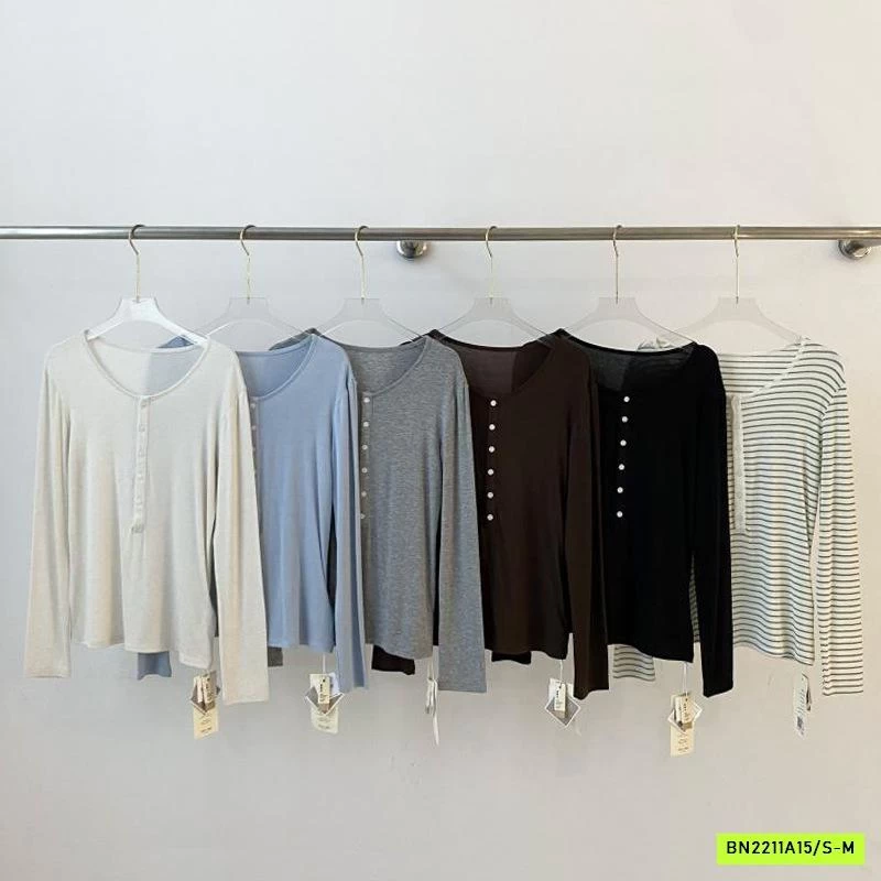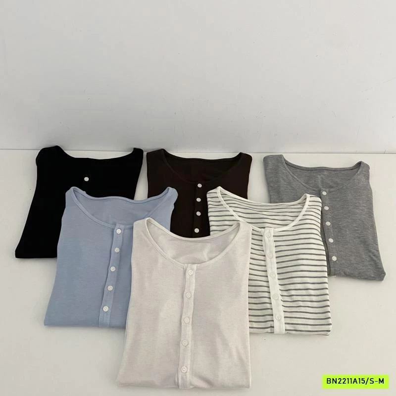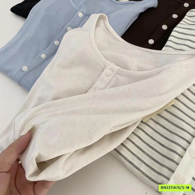 ÁO THUN MỎNG MẶC THU CÚC CỔ