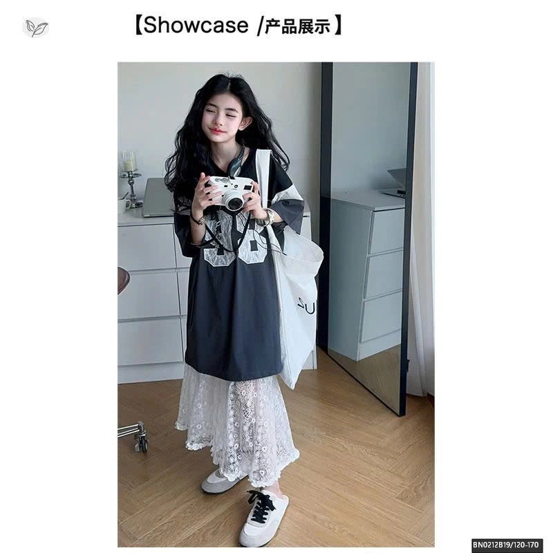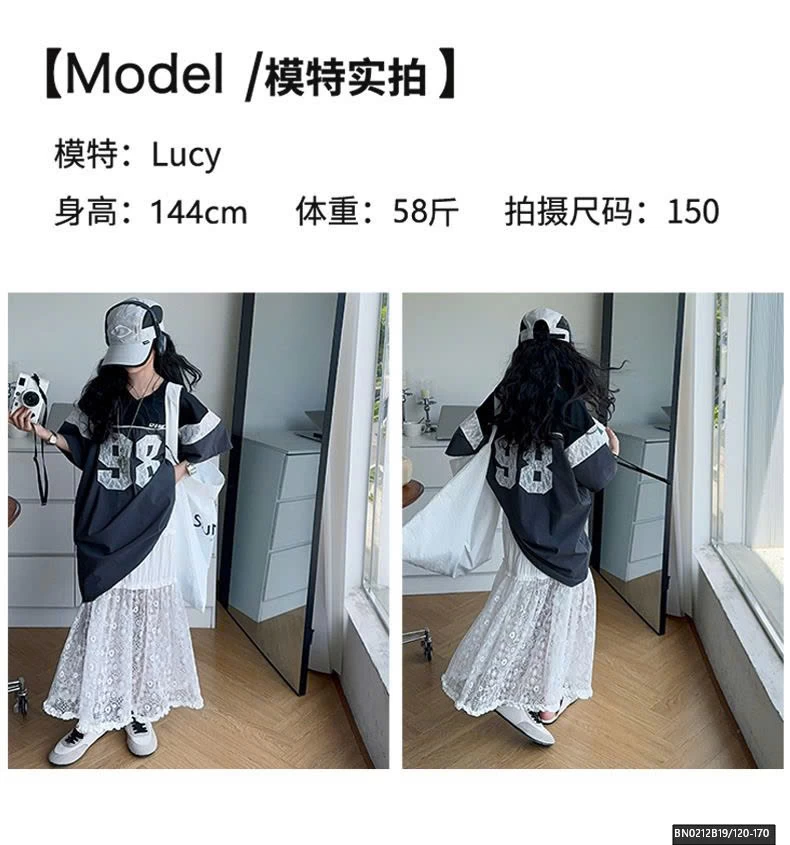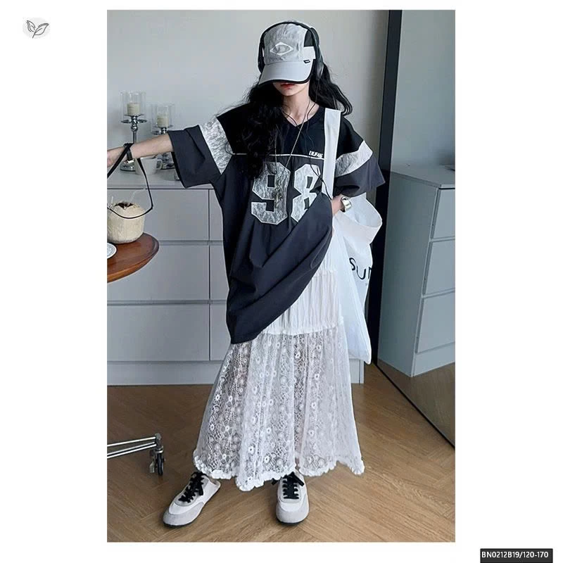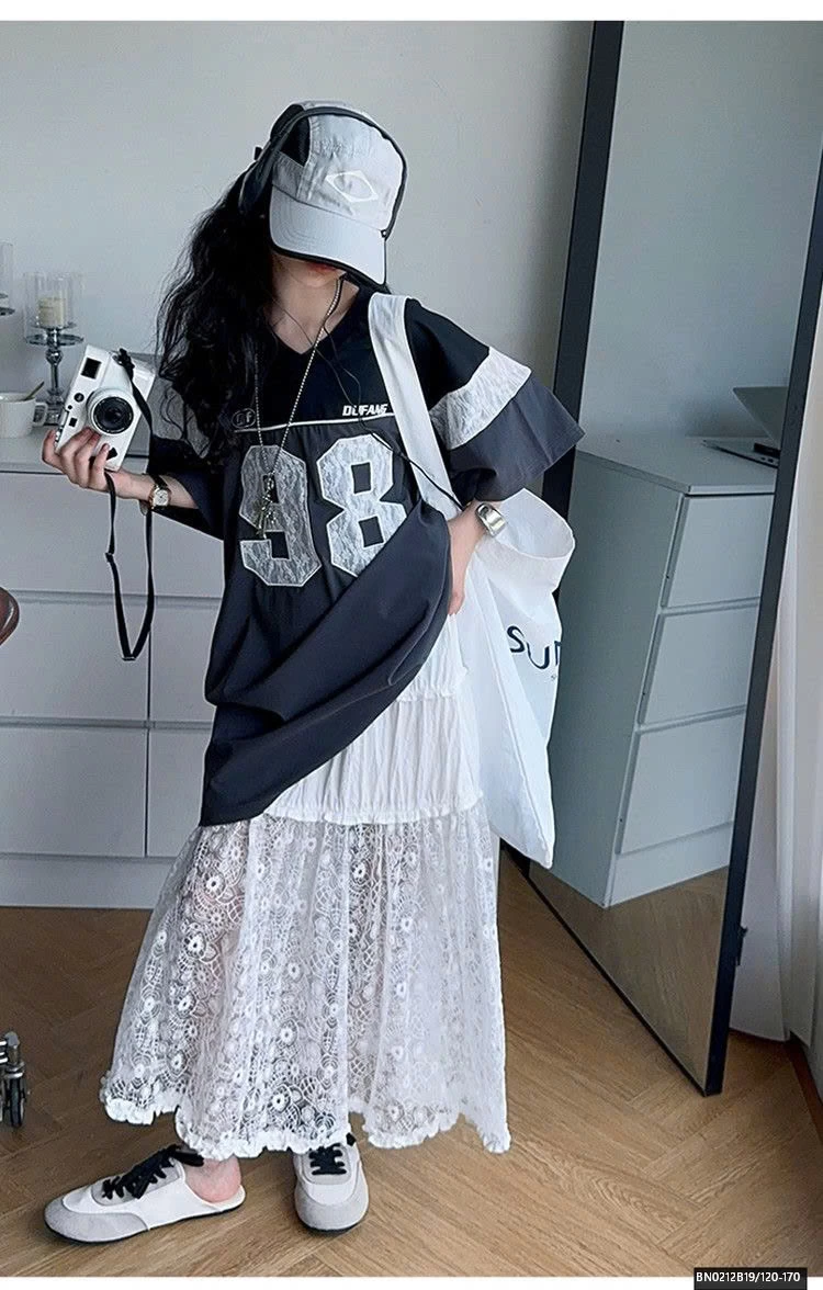 ÁO THUN THỂ THAO SỐ 98 MIX CHÂN VÁY REN DÀI