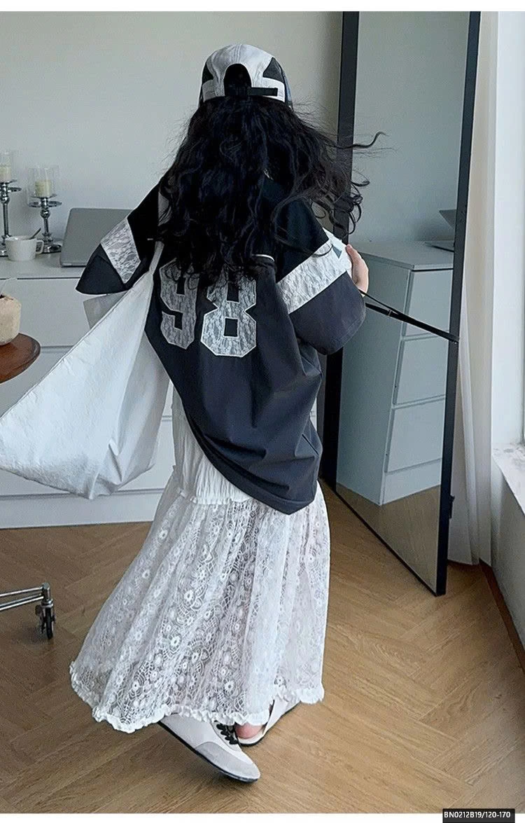 ÁO THUN THỂ THAO SỐ 98 MIX CHÂN VÁY REN DÀI muộn