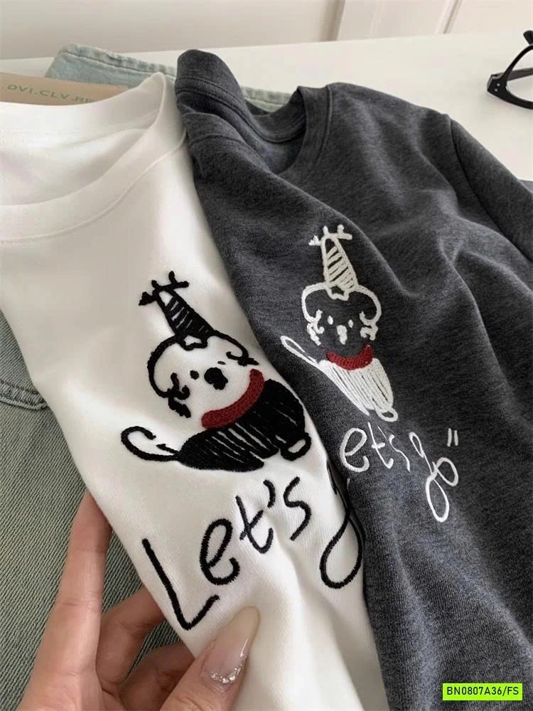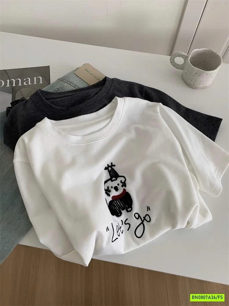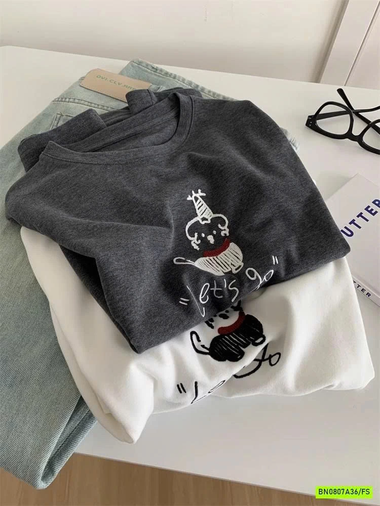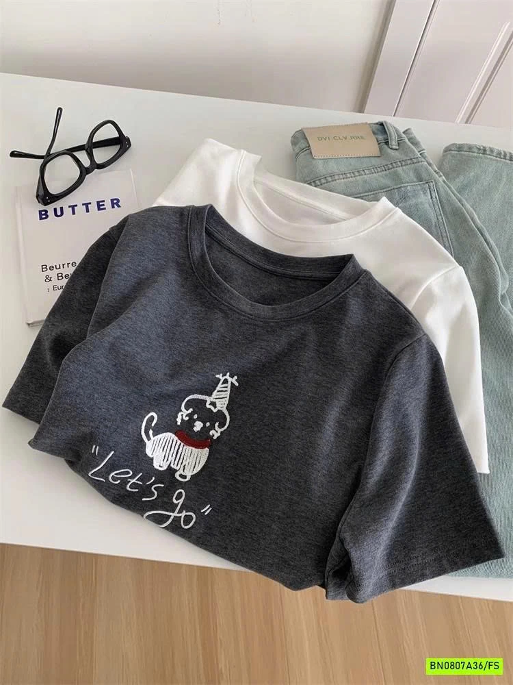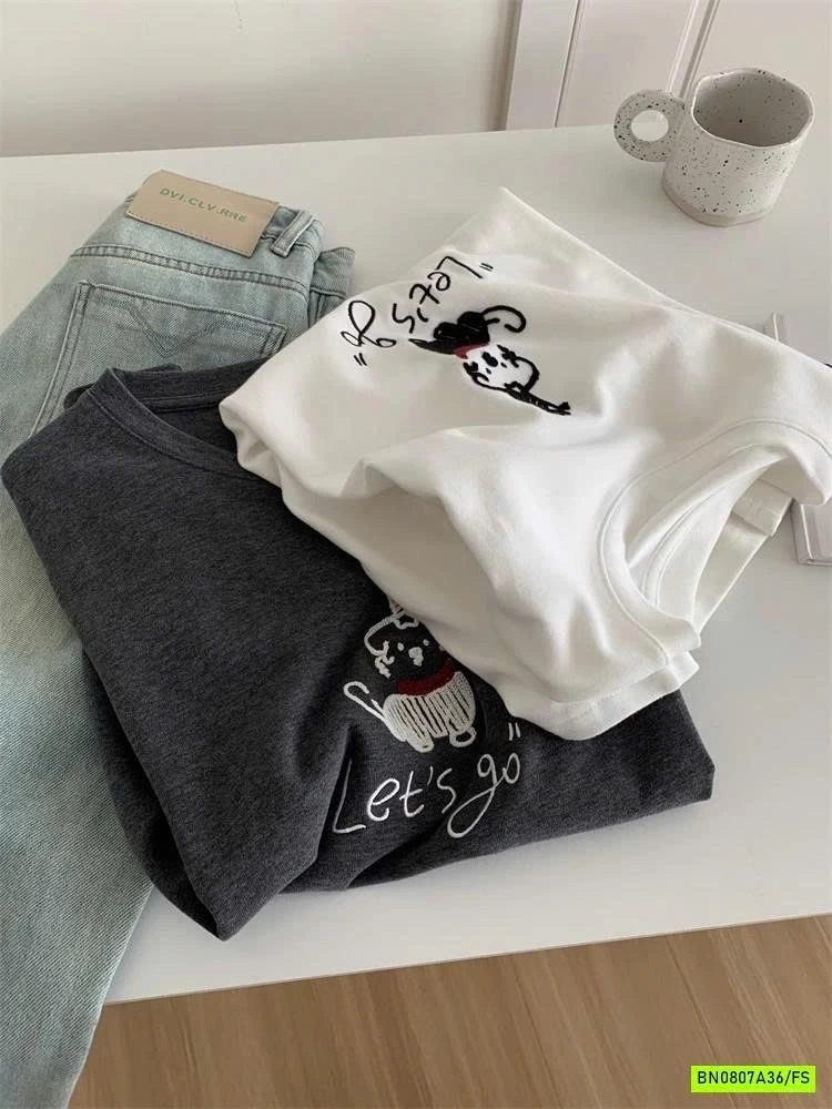 ÁO THUN THÊU CÚN NỮ muộn