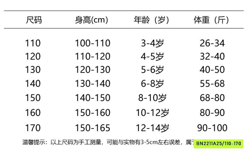 ✔Size : 110-170