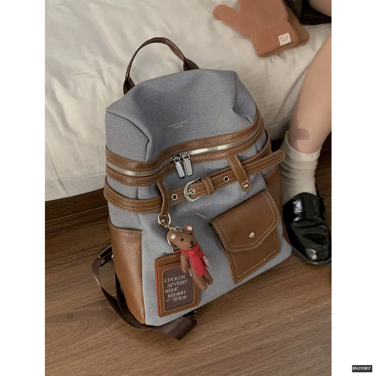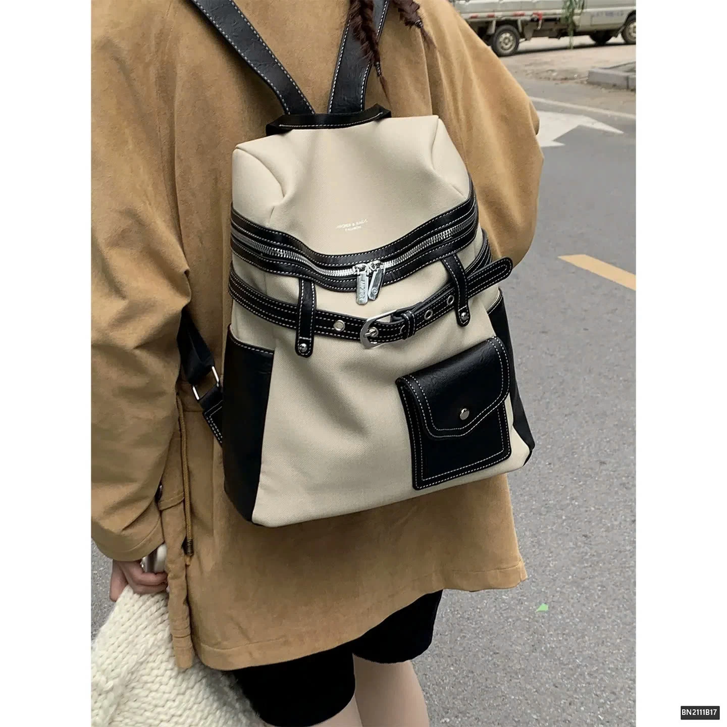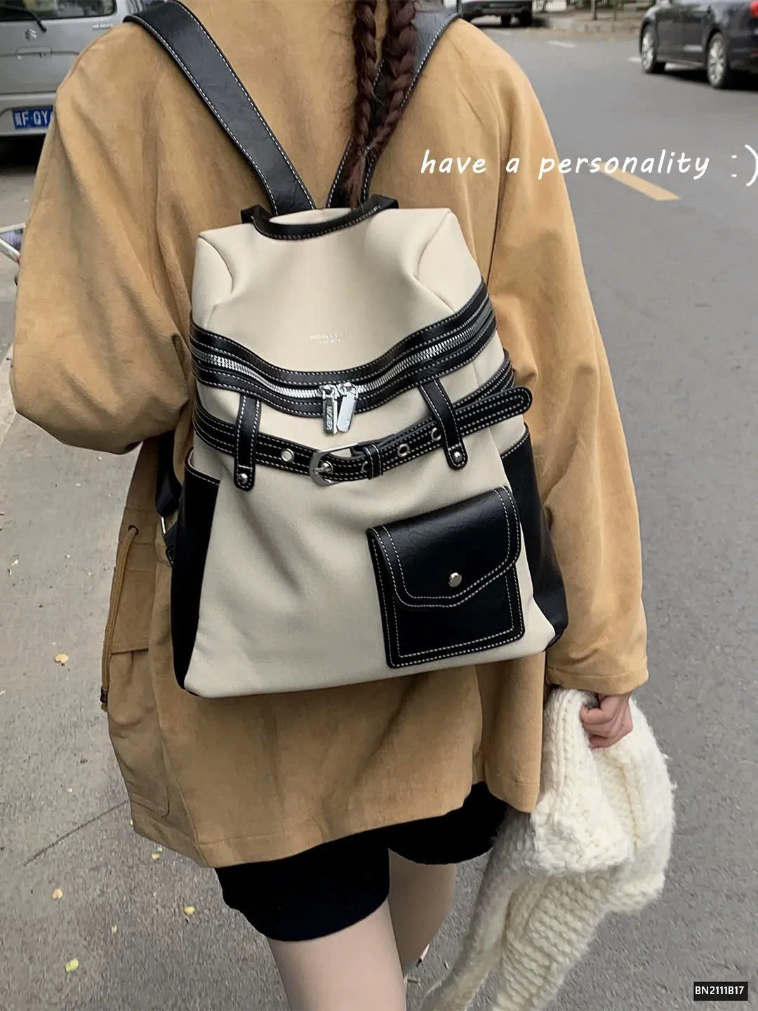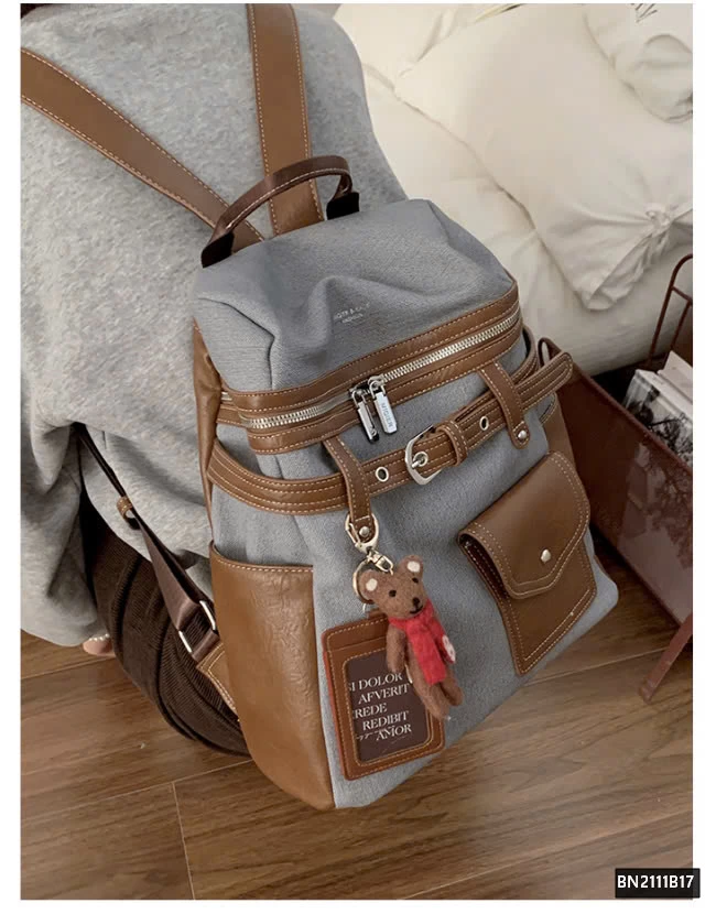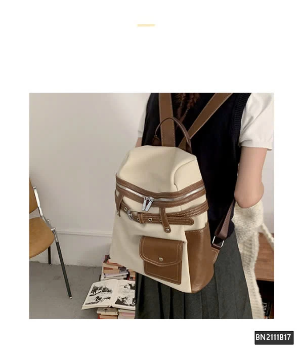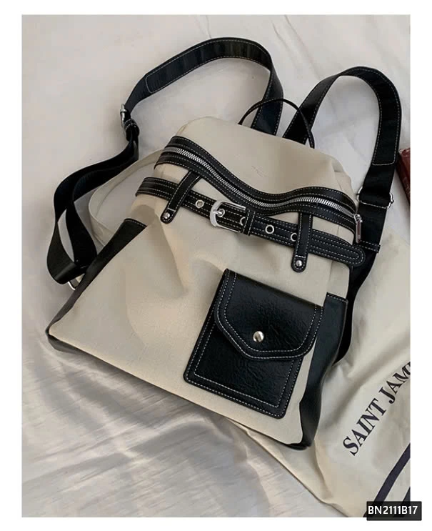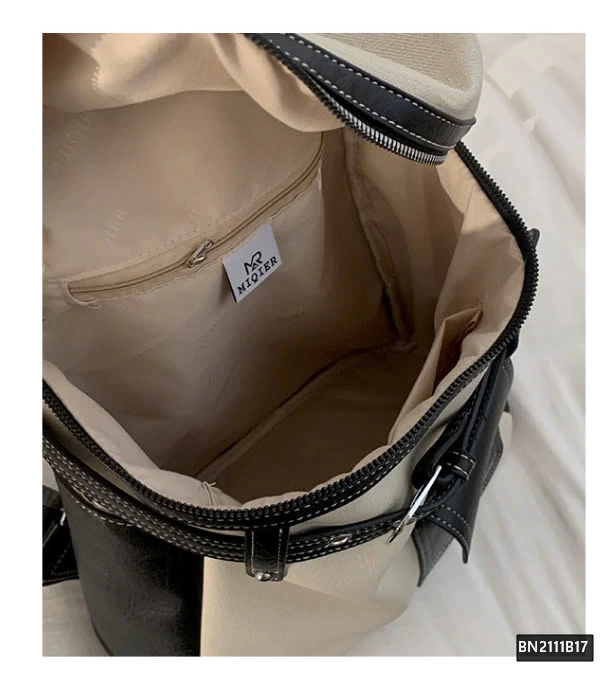 Balo da phối vải thời trang, thiết kế hiện đại và tiện dụng. Chất liệu bền bỉ, kết hợp giữa da PU và vải canvas mang đến cảm giác chắc chắn nhưng vẫn nhẹ nhàng.