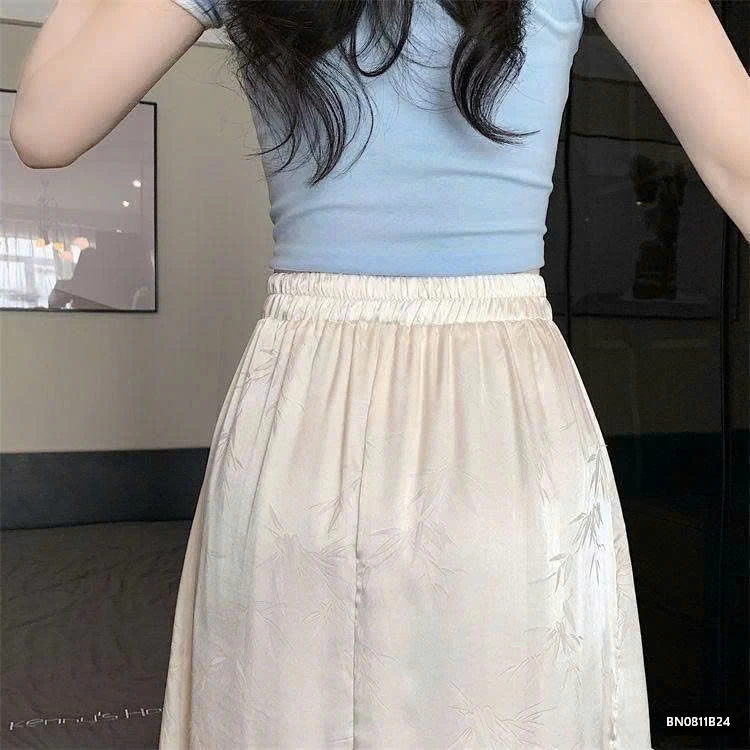 Chất vải mềm mịn, rũ nhẹ tạo độ bay tự nhiên khi di chuyển. Họa tiết trúc tinh tế mang nét thanh lịch, phối dễ với áo croptop, sơ mi hay áo cổ tàu.