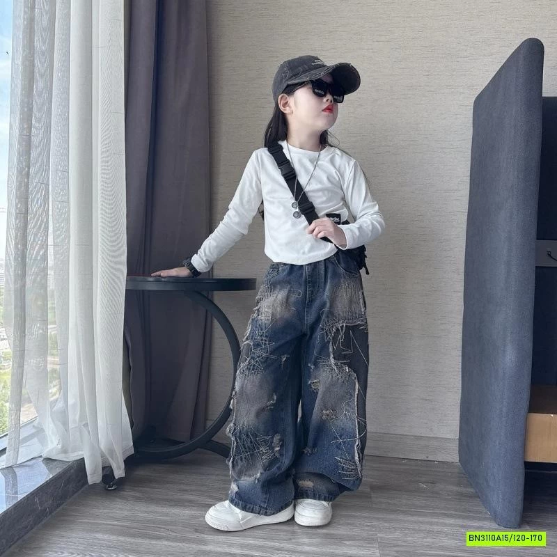 CROP TOP TRẮNG MIX JEANS SUÔNG RÁCH