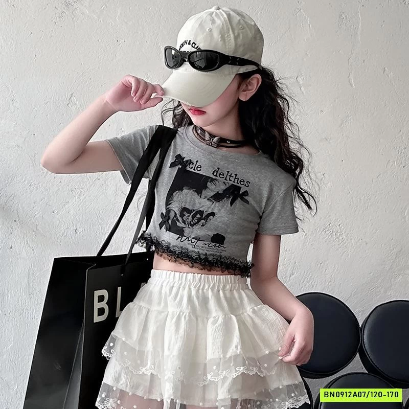 CROPTOP XÁM MIX CV REN TRẮNG