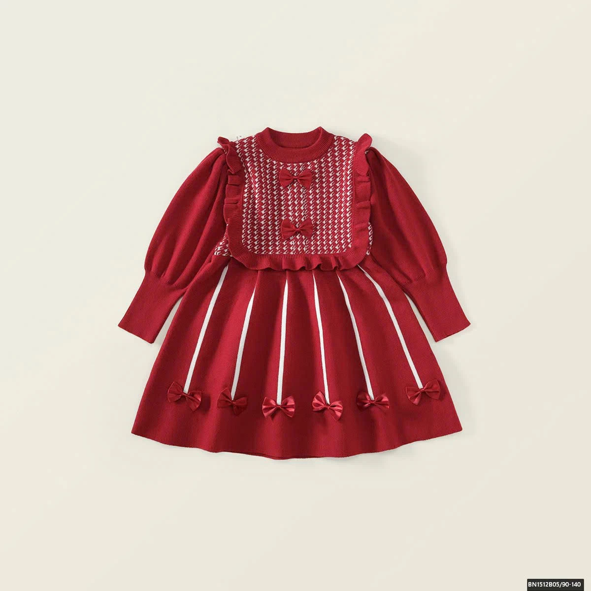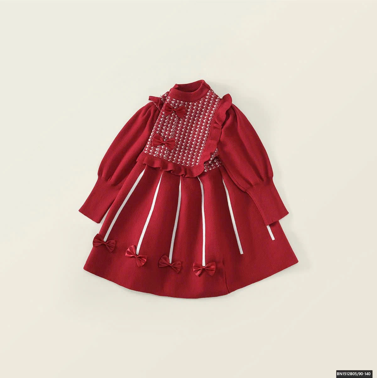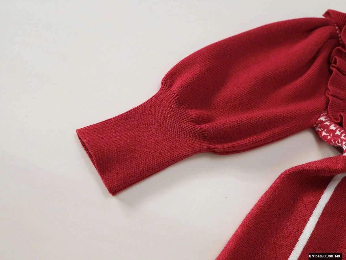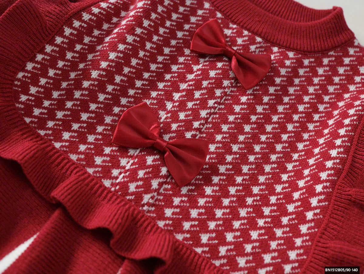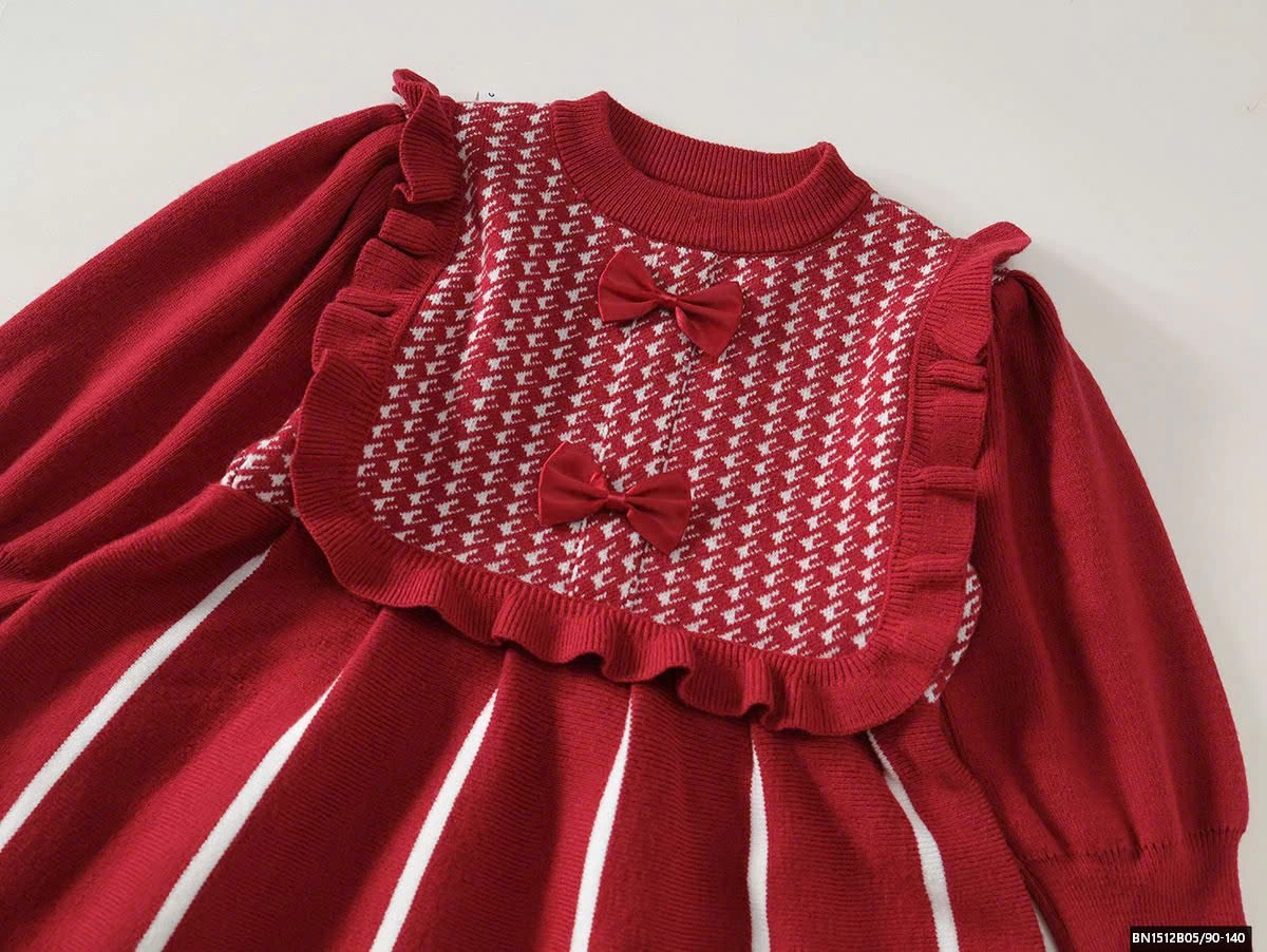 ĐẦM LEN ĐÍNH NƠ CỔ CARO PREMIUM
