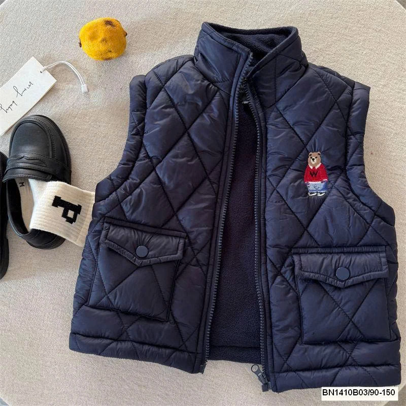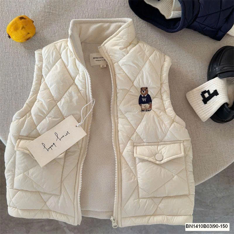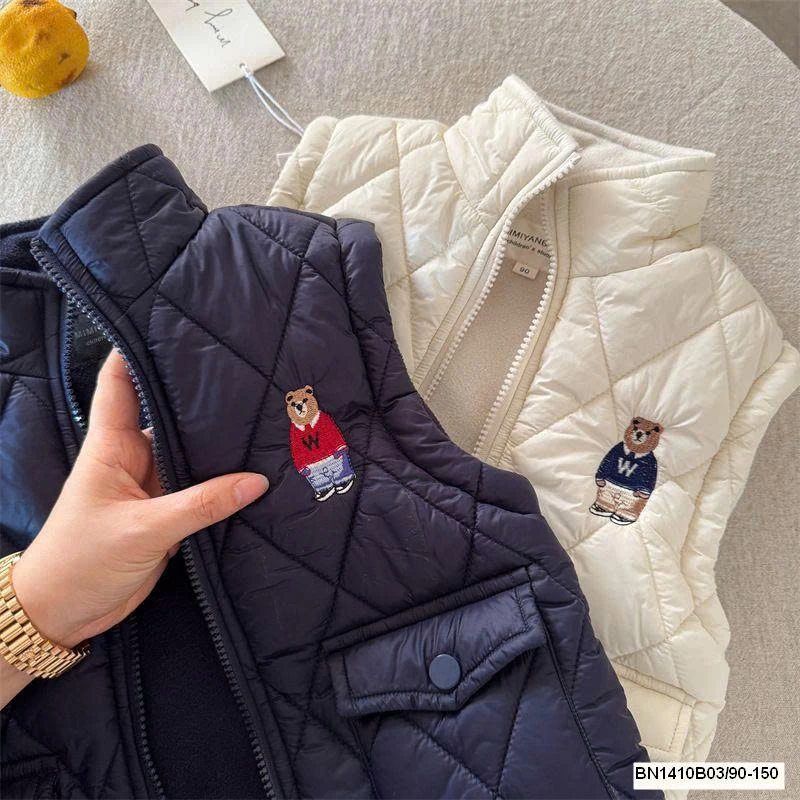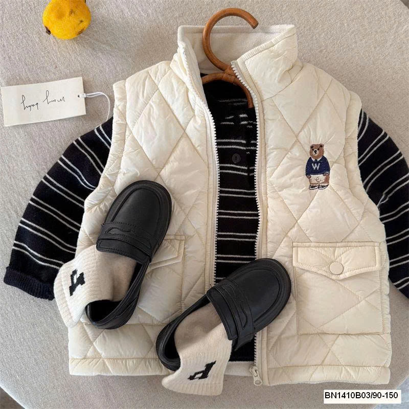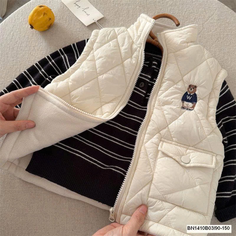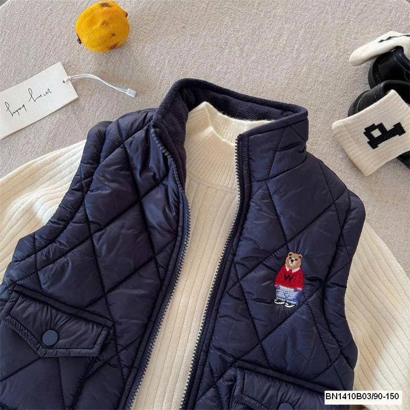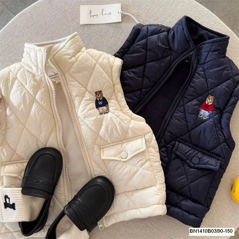 Thiết kế phao gấu dễ thương, giữ ấm tốt mà vẫn nhẹ, bé mặc thoải mái cả ngày.
