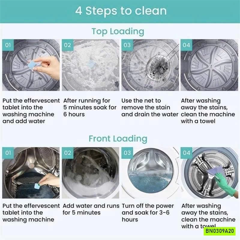 FULL SET lịch vệ sinh lồng máy giặt tròn 1 năm 24 viên - tặng thêm 4 viên full box 28 viên siêu nhiều.