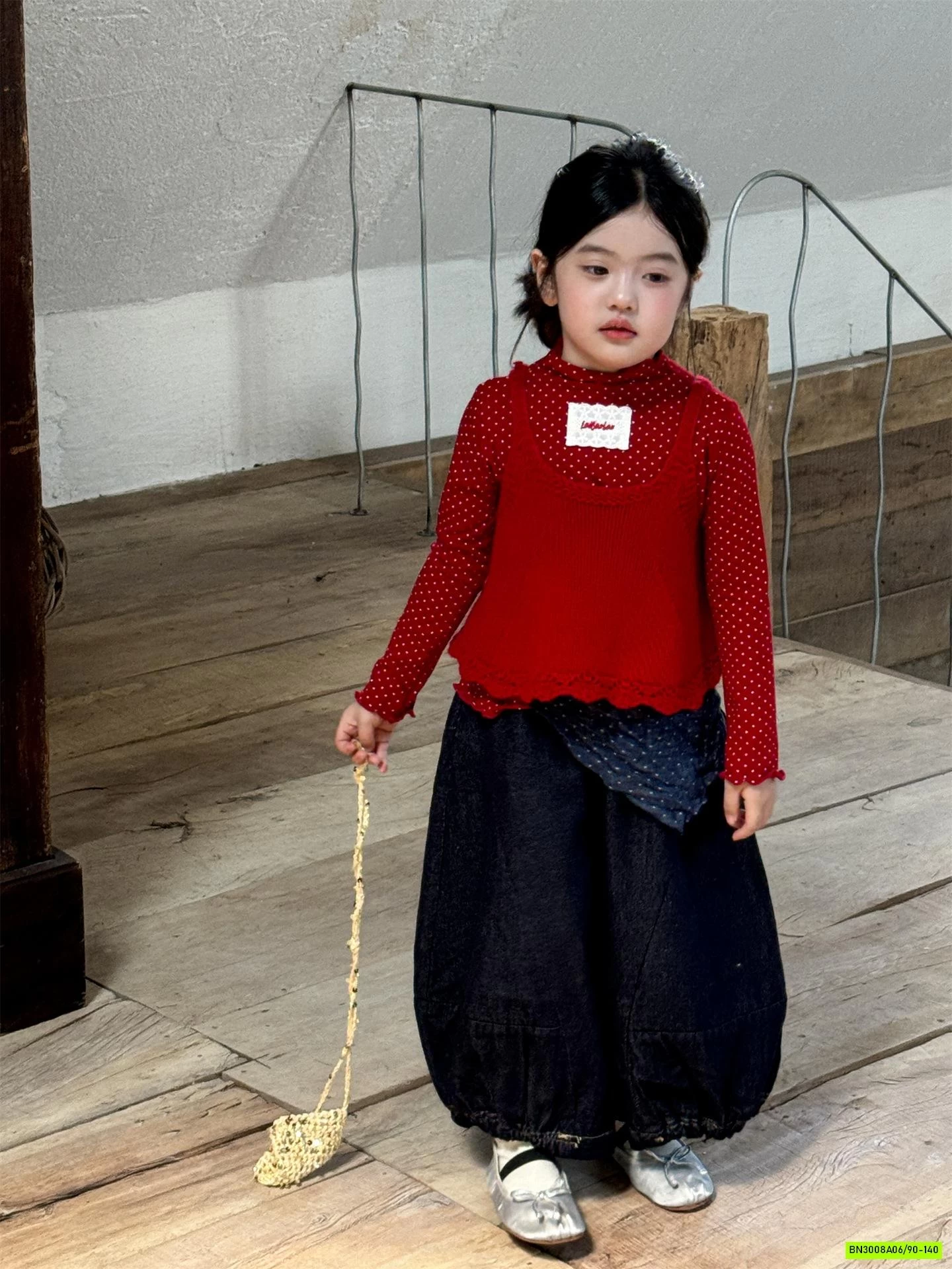 Jeans ống rộng bo gấu dáng bí, thiết kế trẻ trung cá tính, form dáng rộng thoải mái, chất liệu bền đẹp, cho bé diện đi học hay đi chơi đều hợp.