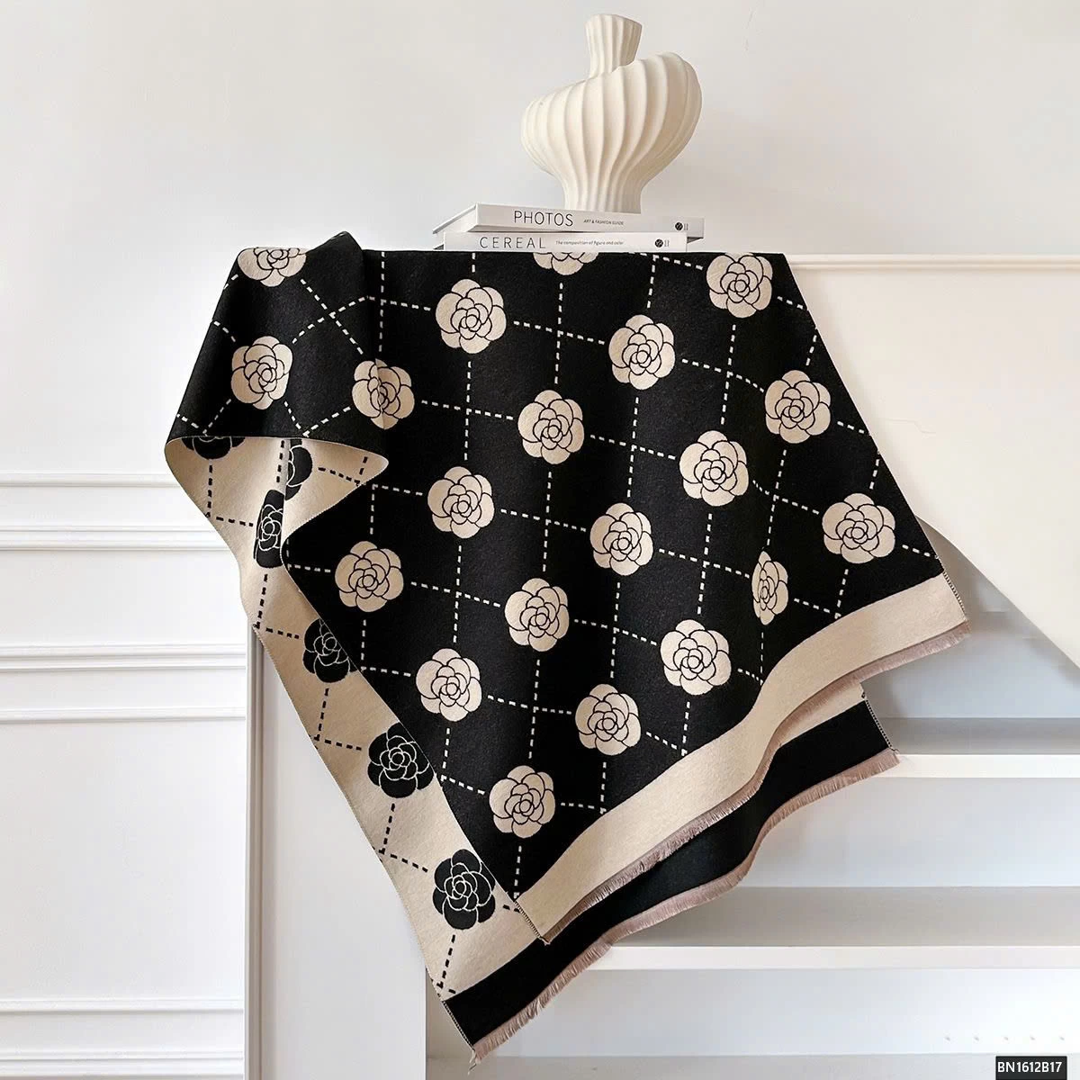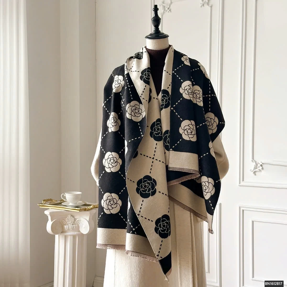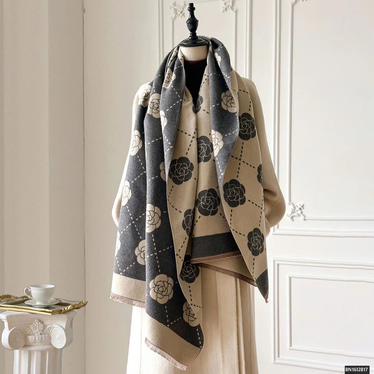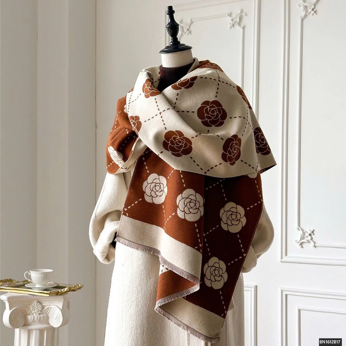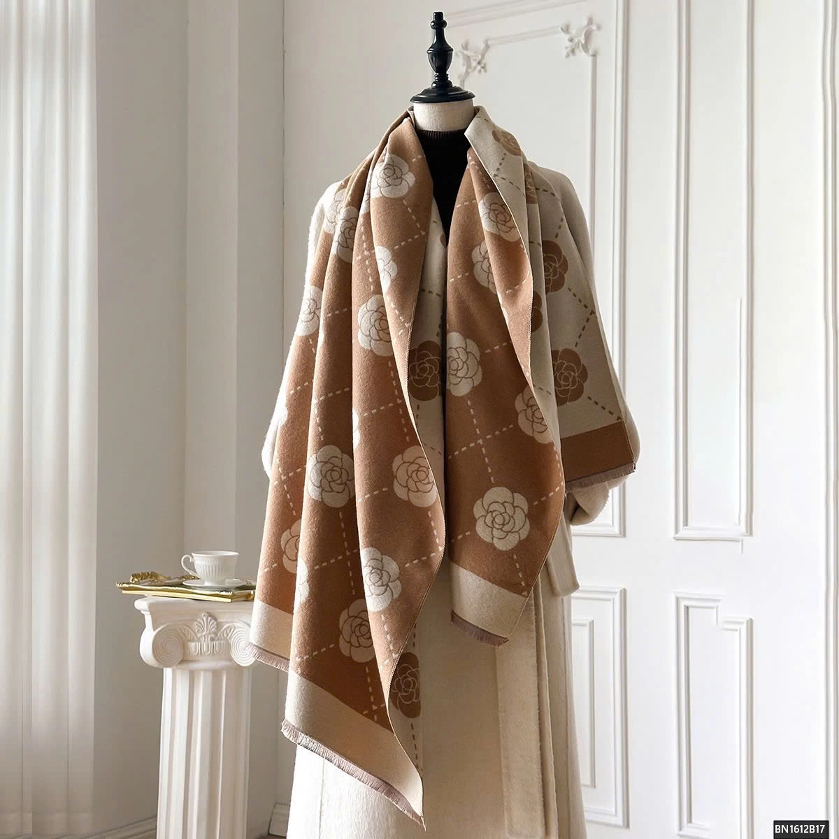 KHĂN CHOÀNG HỌA TIẾT HOA TRÀ