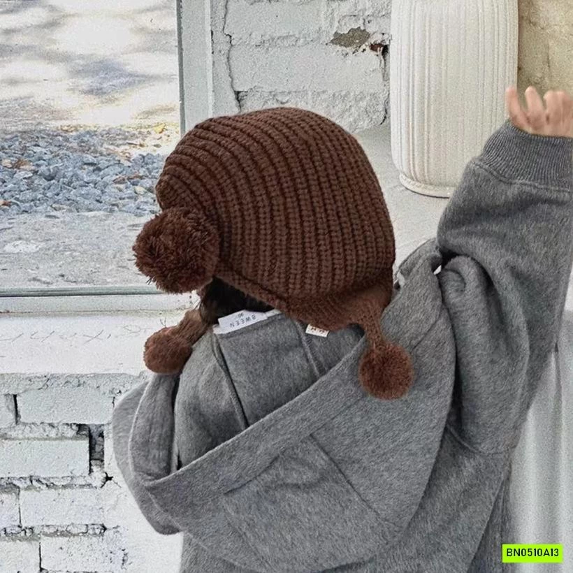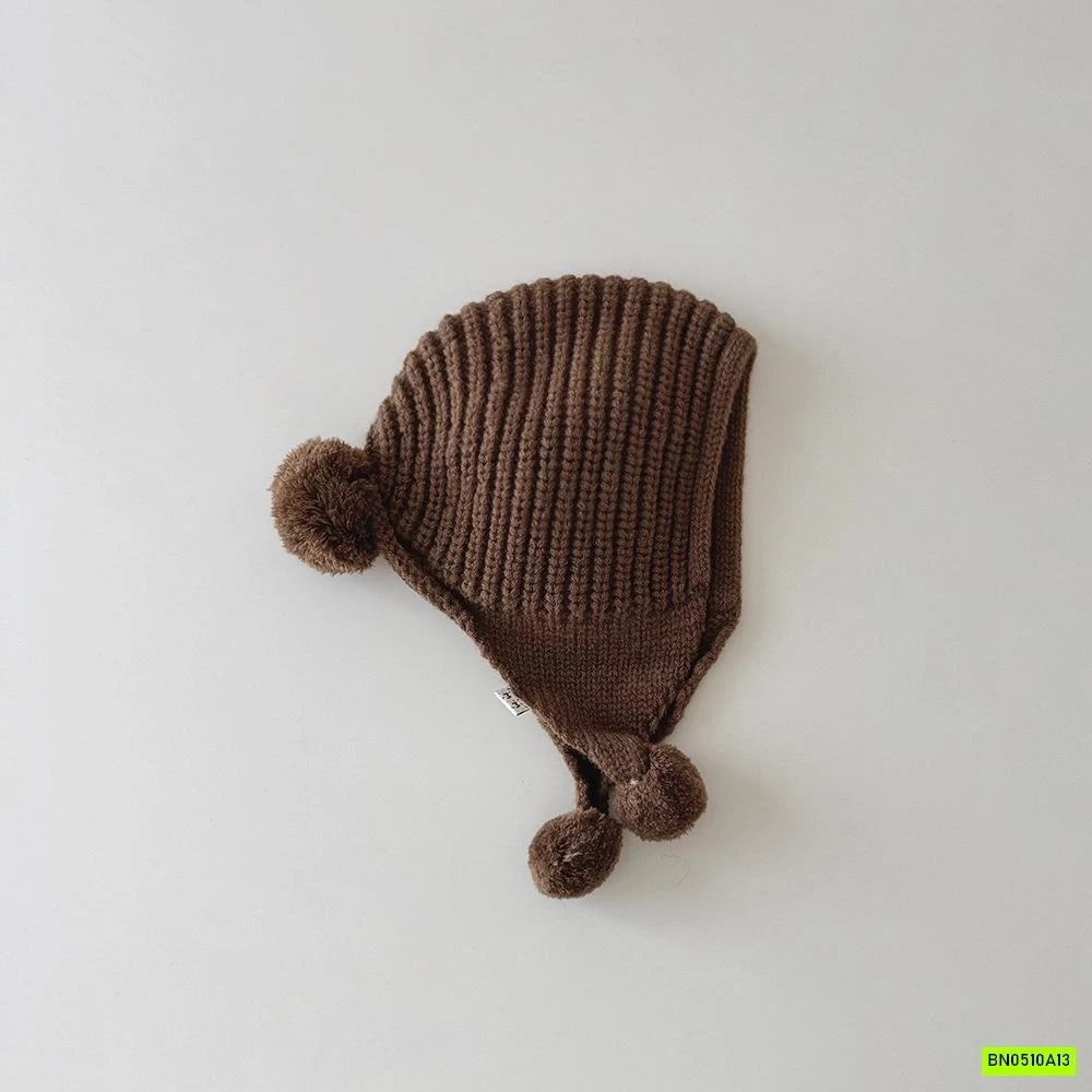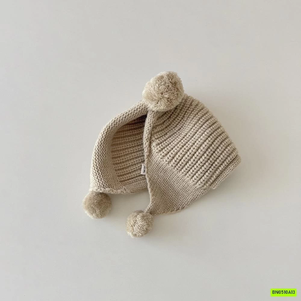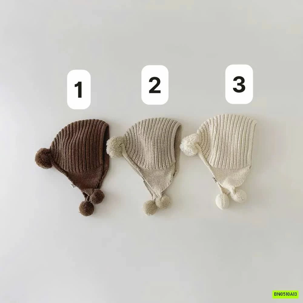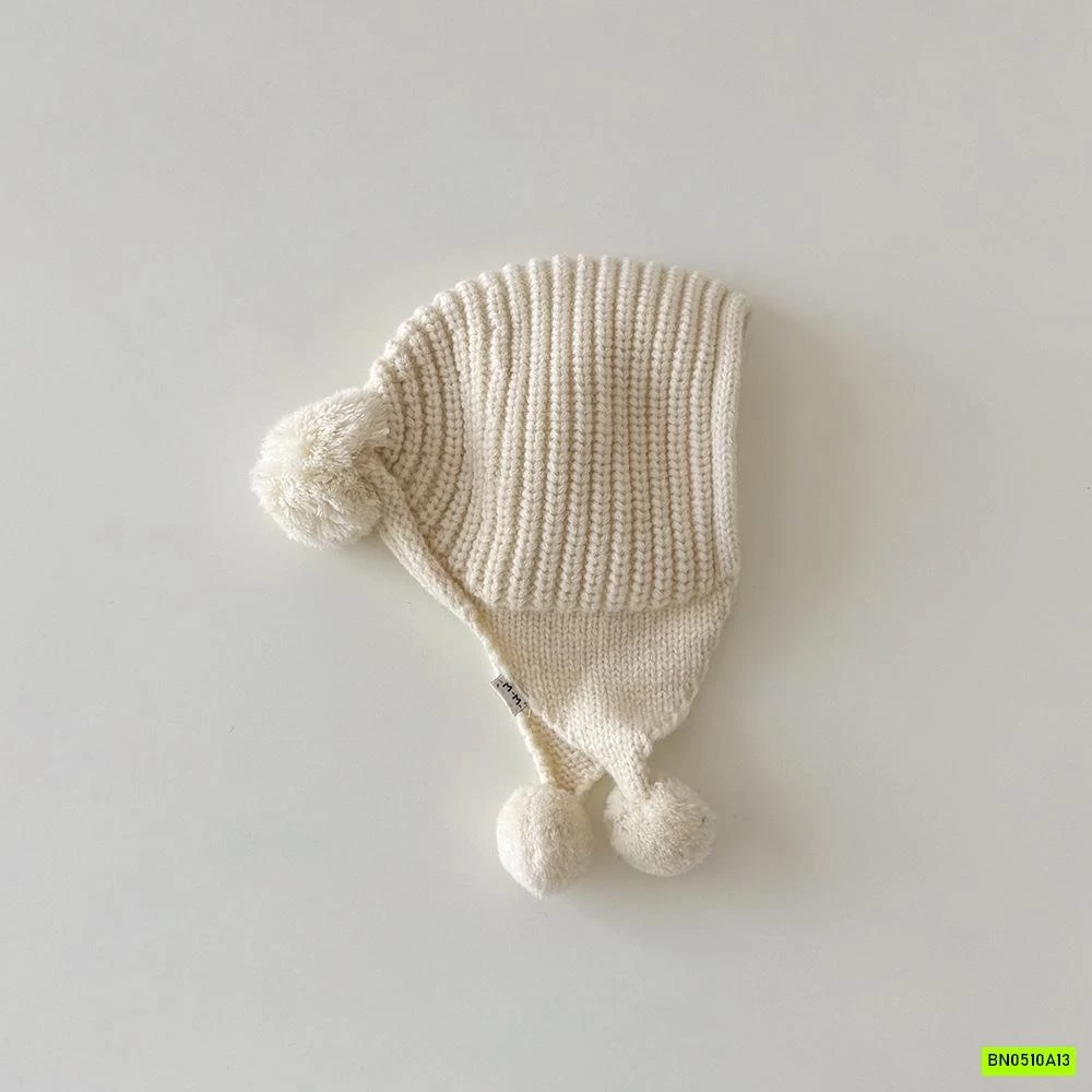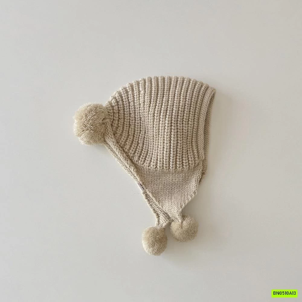MŨ LEN BỊT TAI GẮN BÔNG VINTAGE