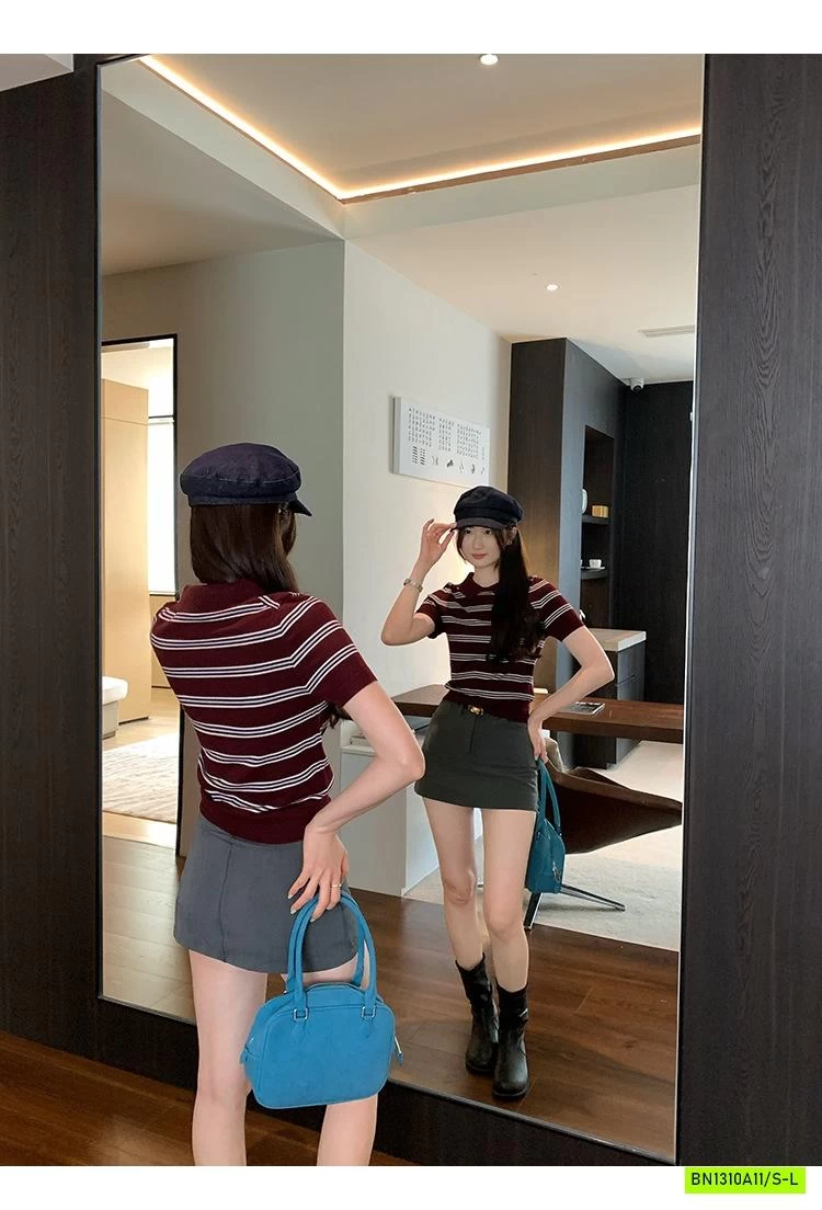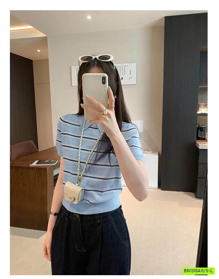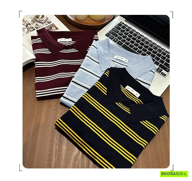 POLO LEN KẺ NGẮN TAY