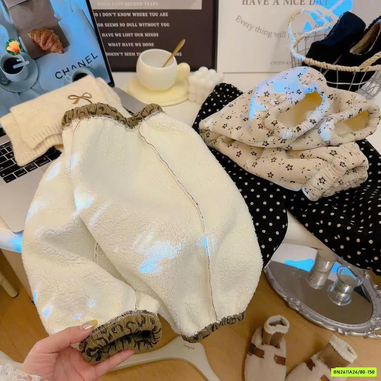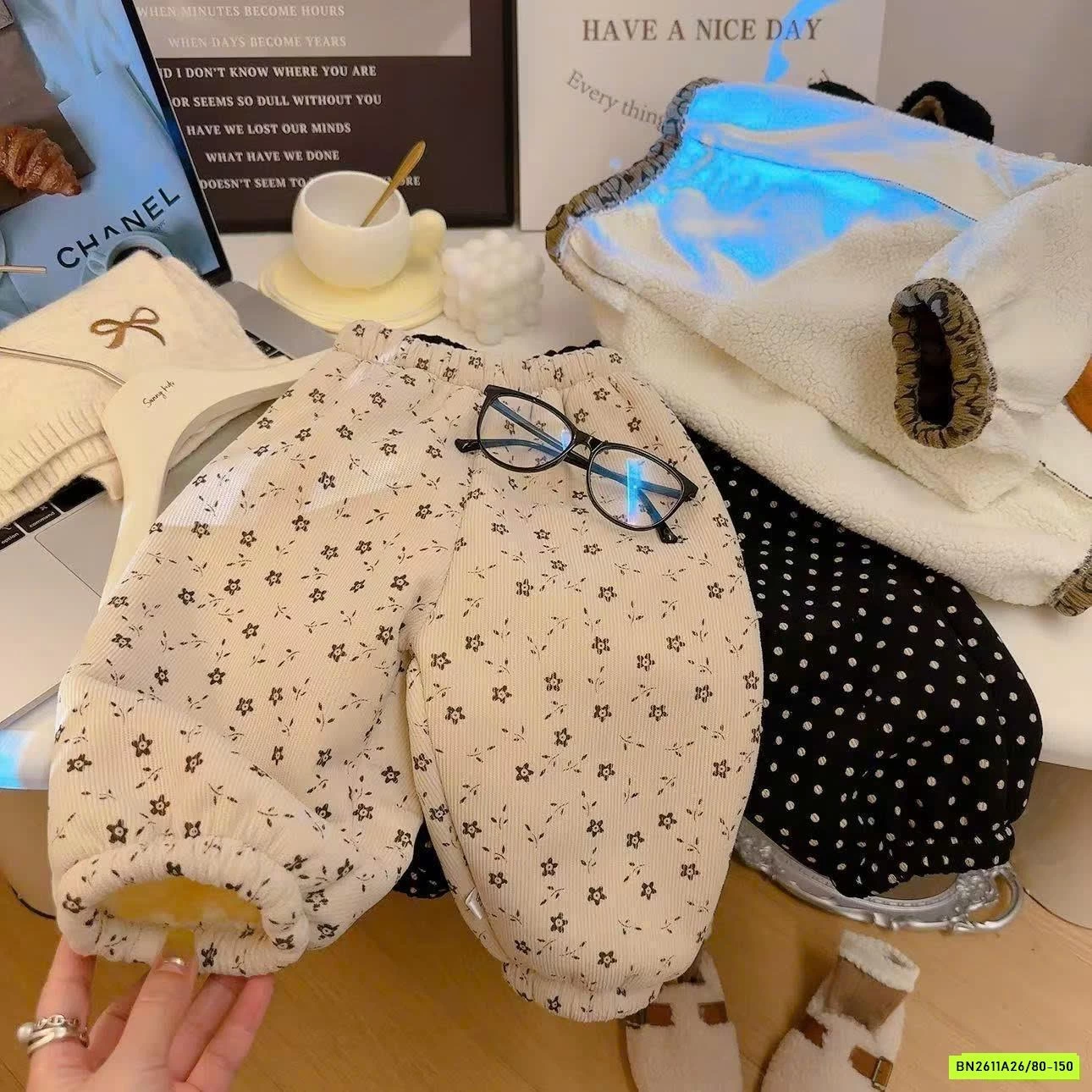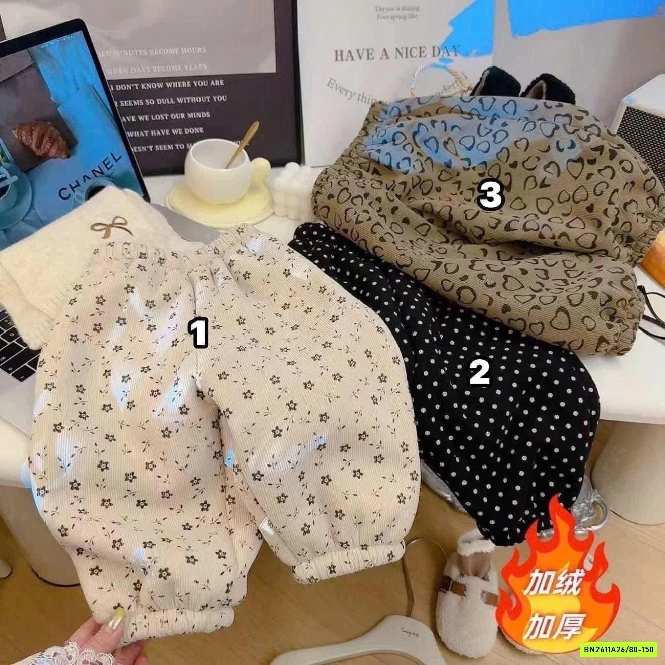 Quần boom lót nỉ siêu dày ấm luôn ạ, hôm nào gió lạnh thì em này chuẩn chân ái.