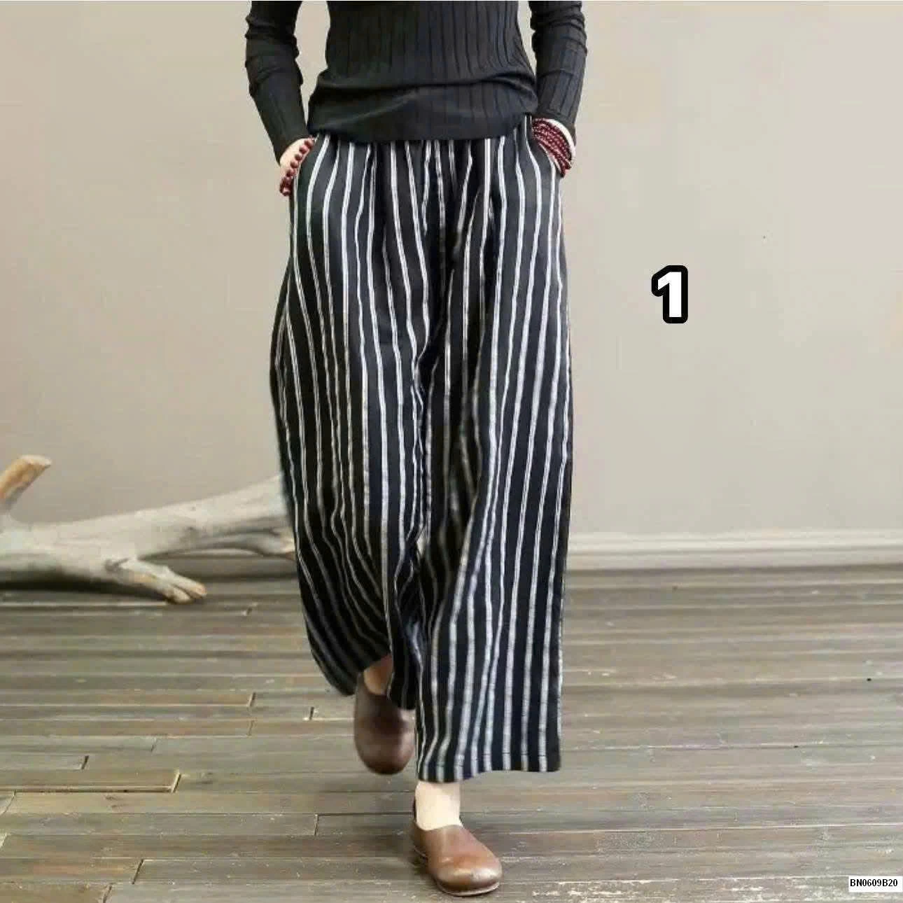 QUẦN ỐNG RỘNG KẺ SỌC muộn