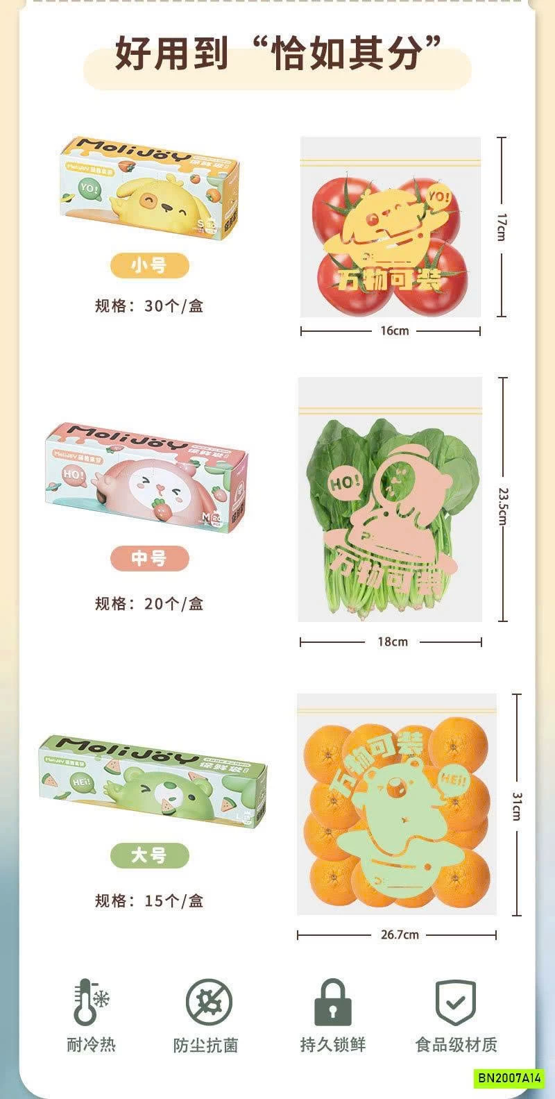 -30 độ C : Túi giữ lạnh, có nút kép kín hơi giúp thực phẩm hay rau củ quả tươi được giữ lâu hơn