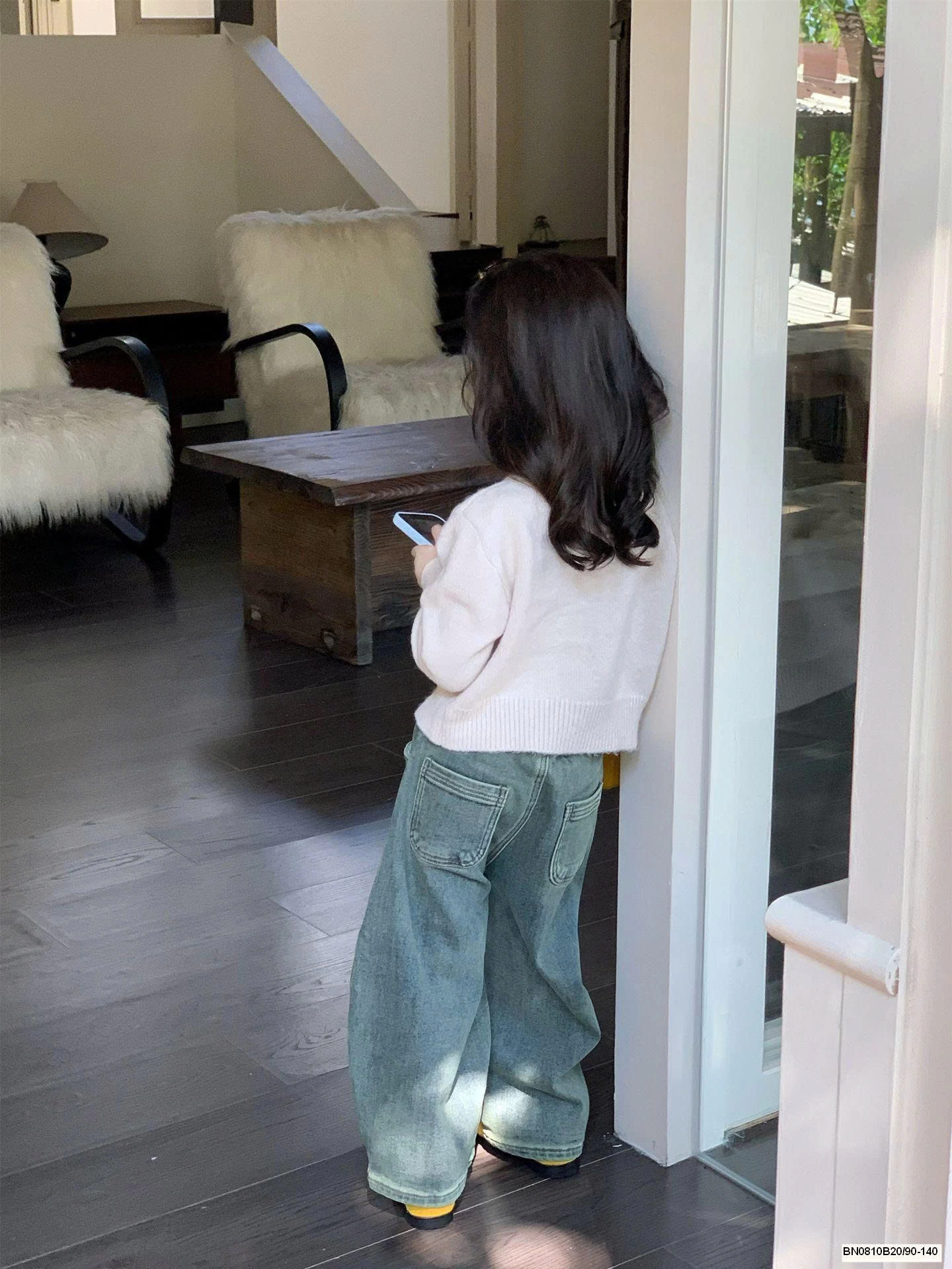 Phối đồ chuẩn style Hàn cho bé yêu 💕 Áo khoác len mềm ấm mix cùng quần jean ống rộng cá tính — bé mặc đi chơi hay chụp hình đều cực xinh.