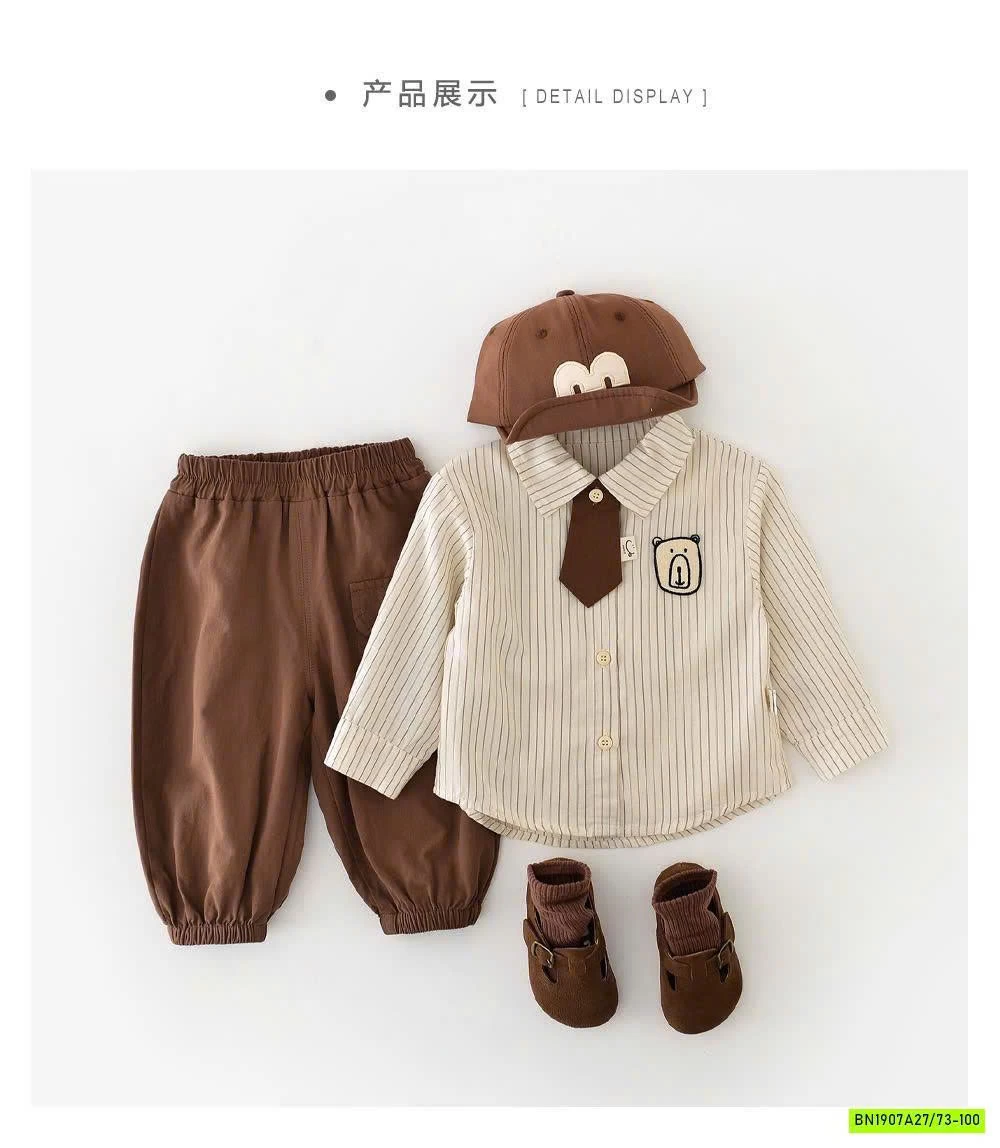 SET ÁO SƠ MI KẺ MIX QUẦN BO GẤU BT