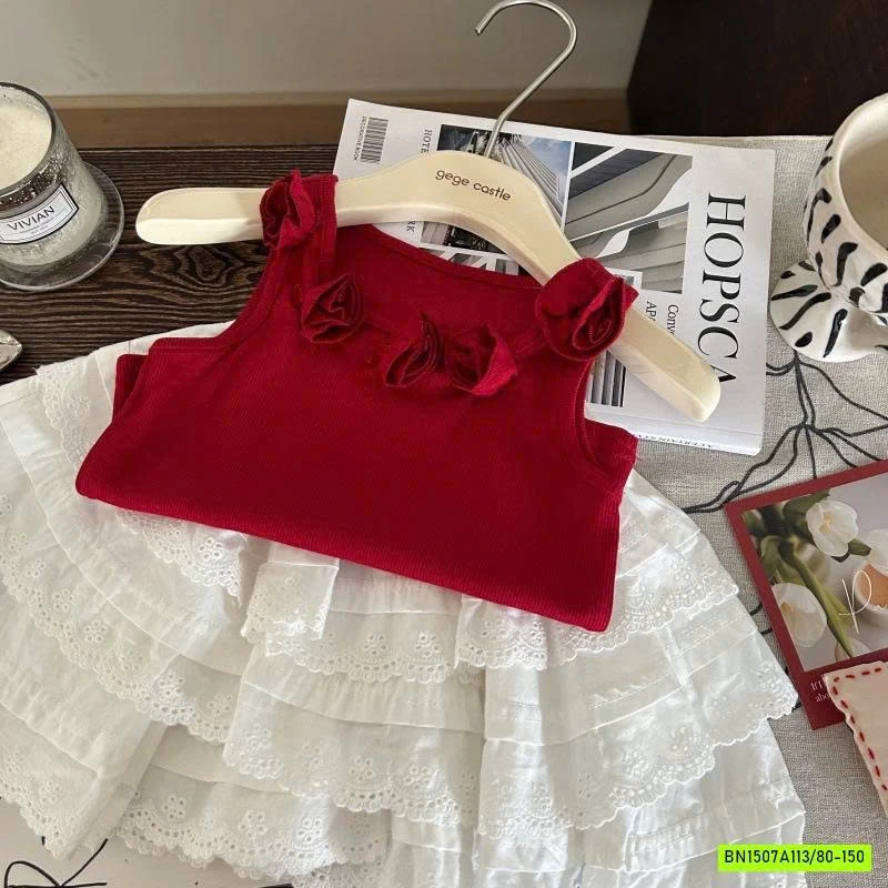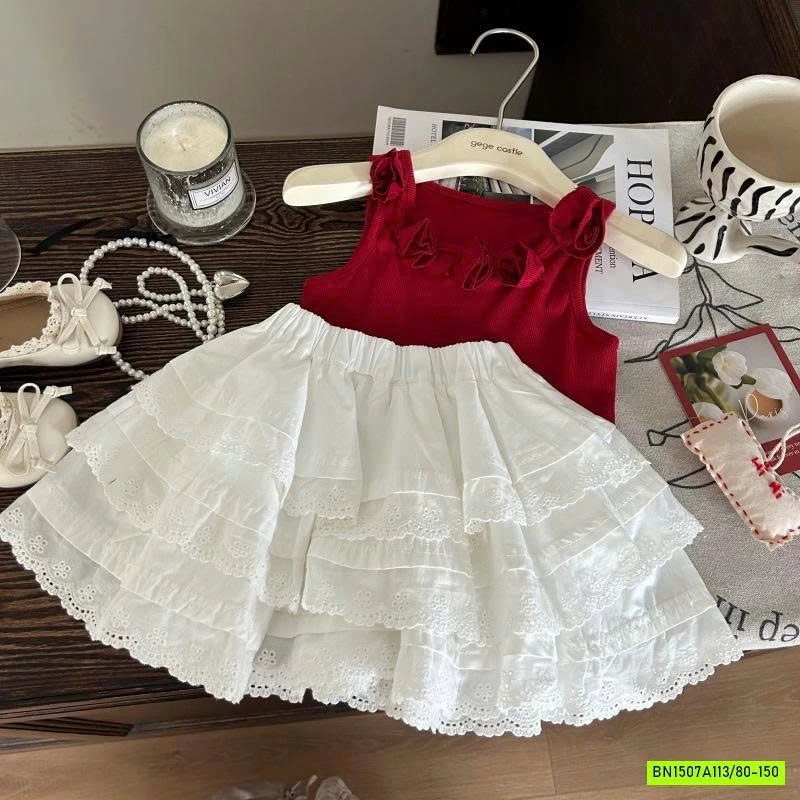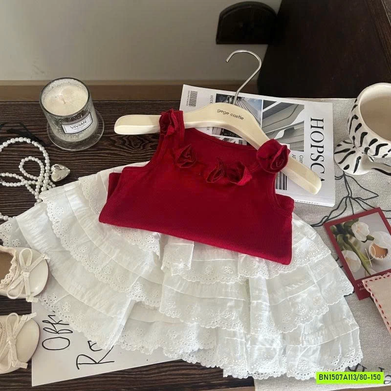 SÉT ÁO YẾM ĐỎ MIX CV TRẮNG muộn