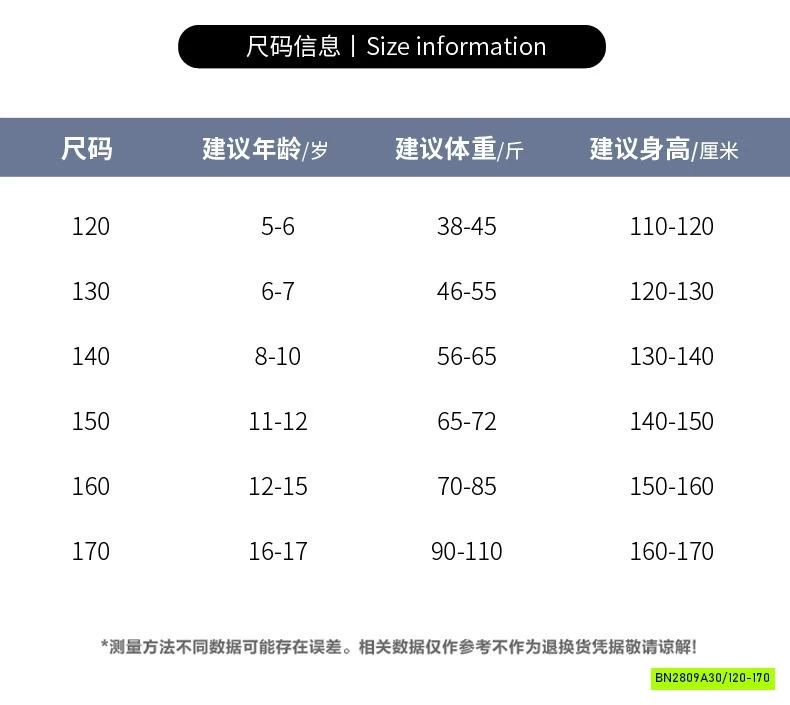 ✔Size : 120 – 170