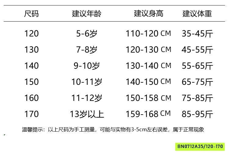 ✔Size : 120-170