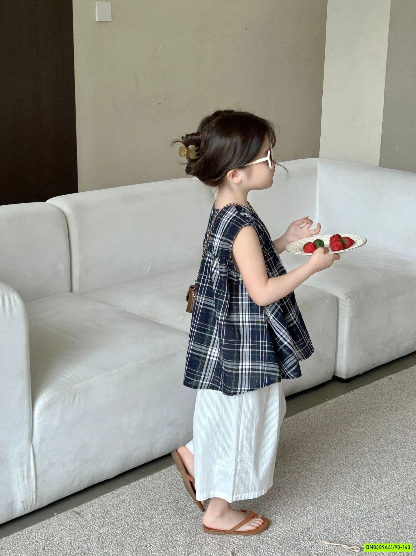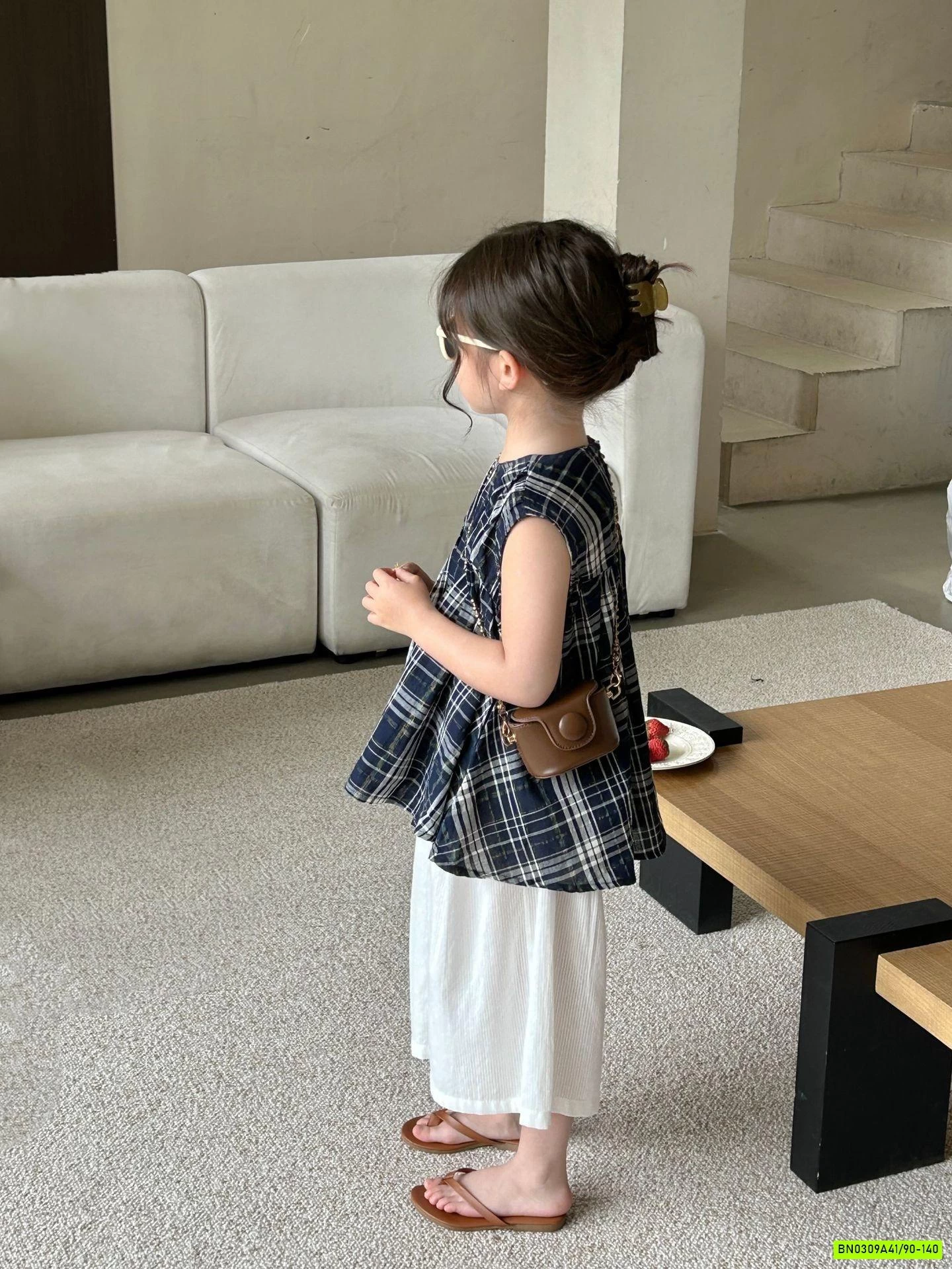 SƠ MI CARO MIX QUẦN SUÔNG TRẮNG