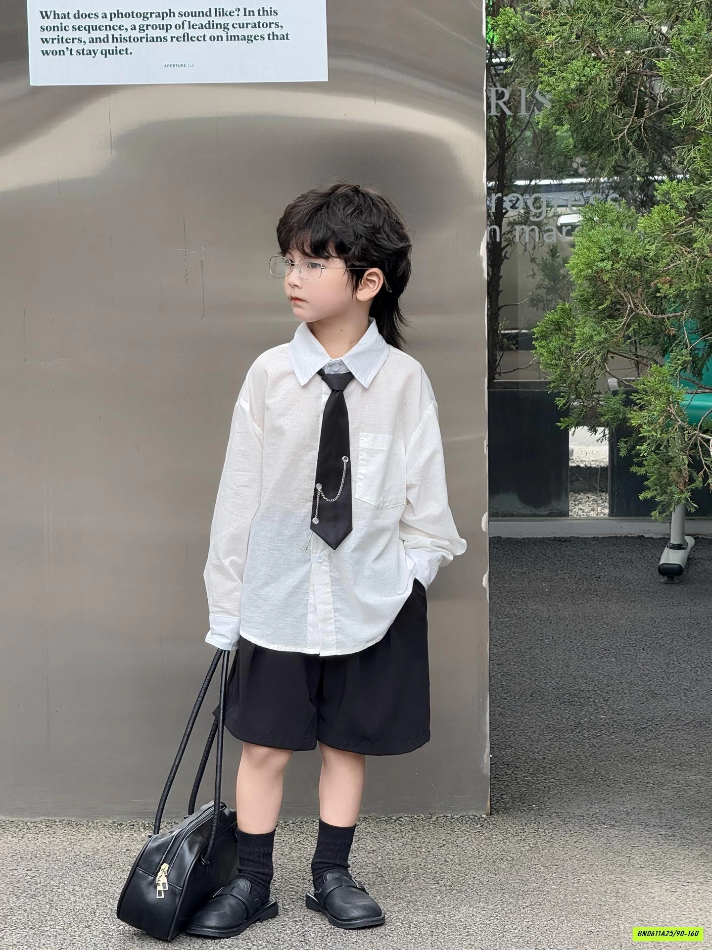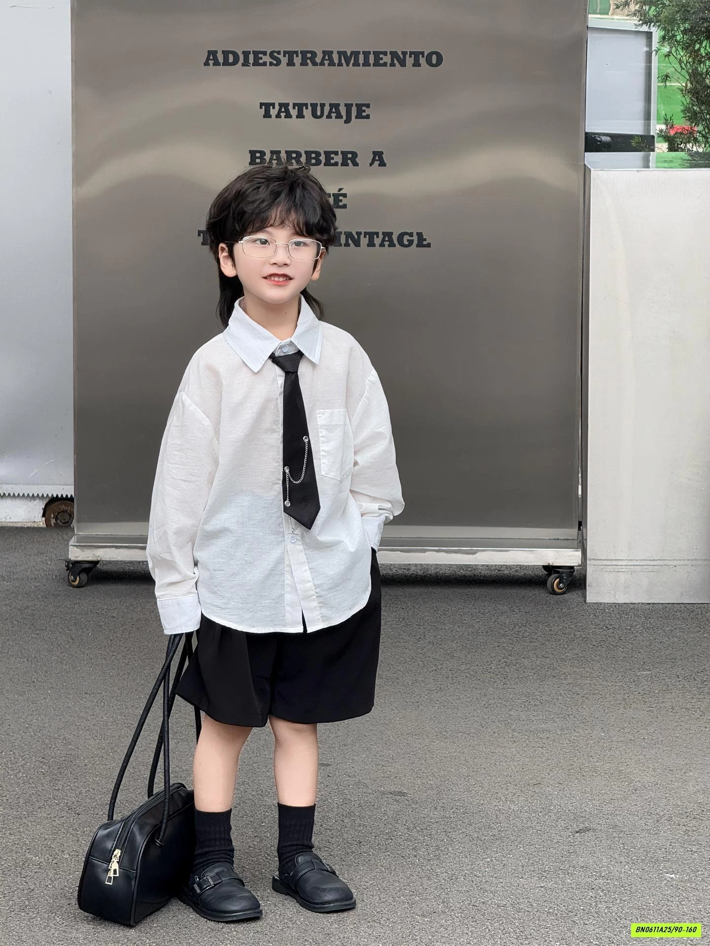 SƠ MI ĐŨI DÀI TAY KÈM CÀ VẠT + SHORT ĐEN