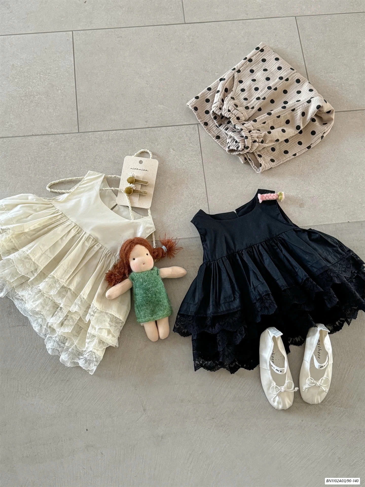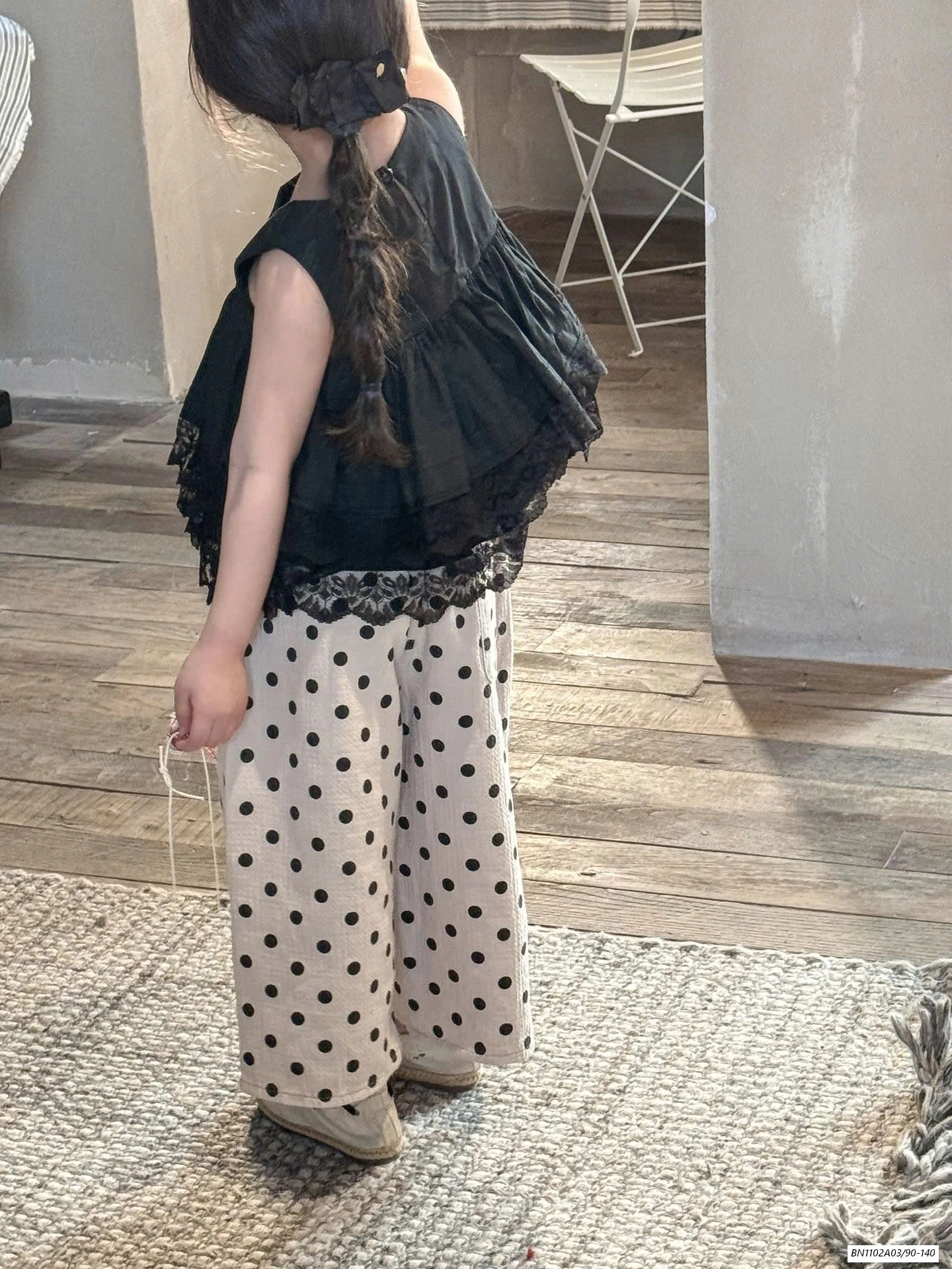 ÁO BBD MIX QUẦN SUÔNG CHẤM BI muộn
