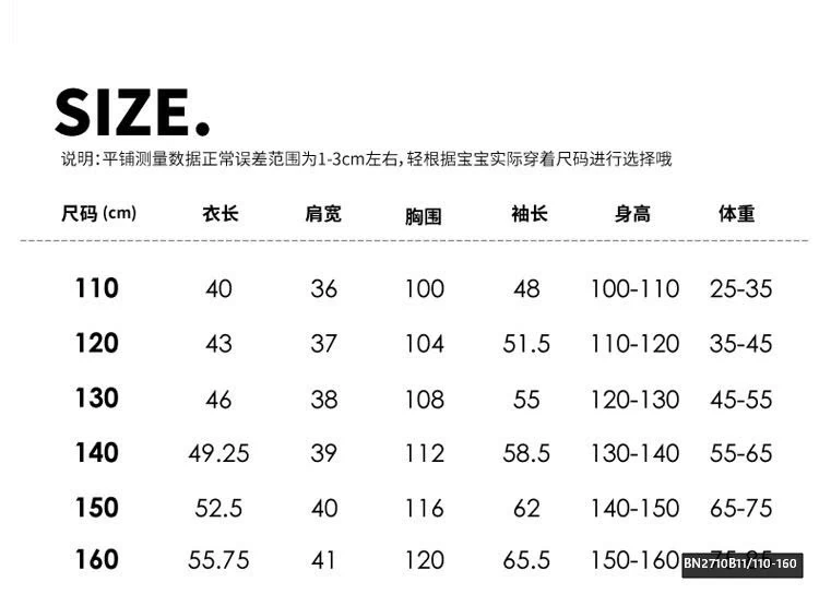 size 110-160