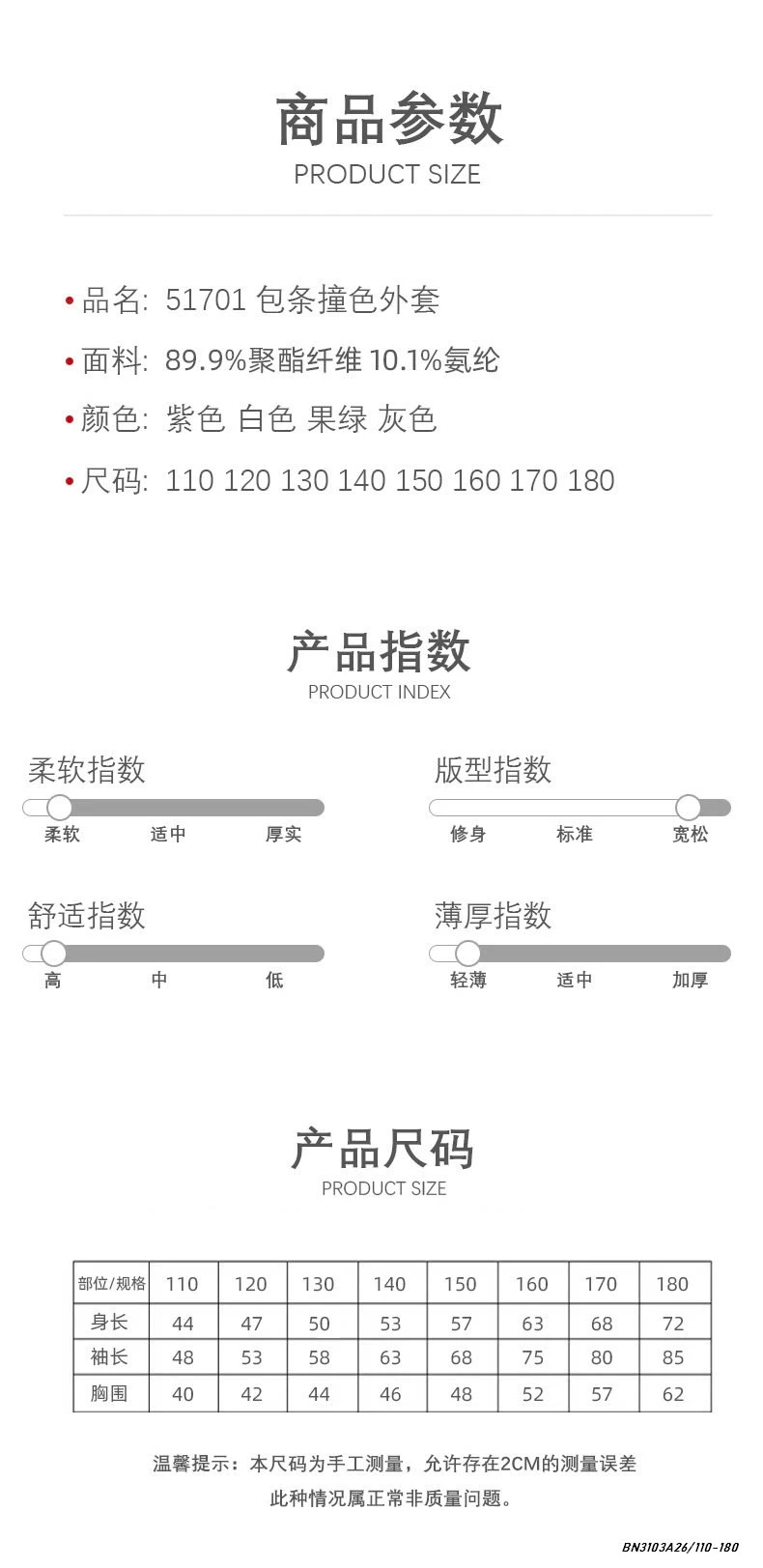 - size 110-180