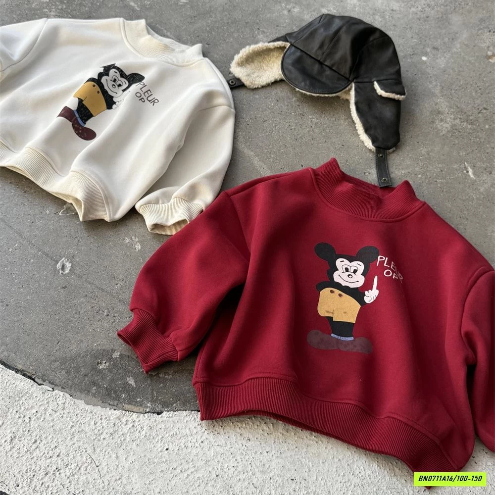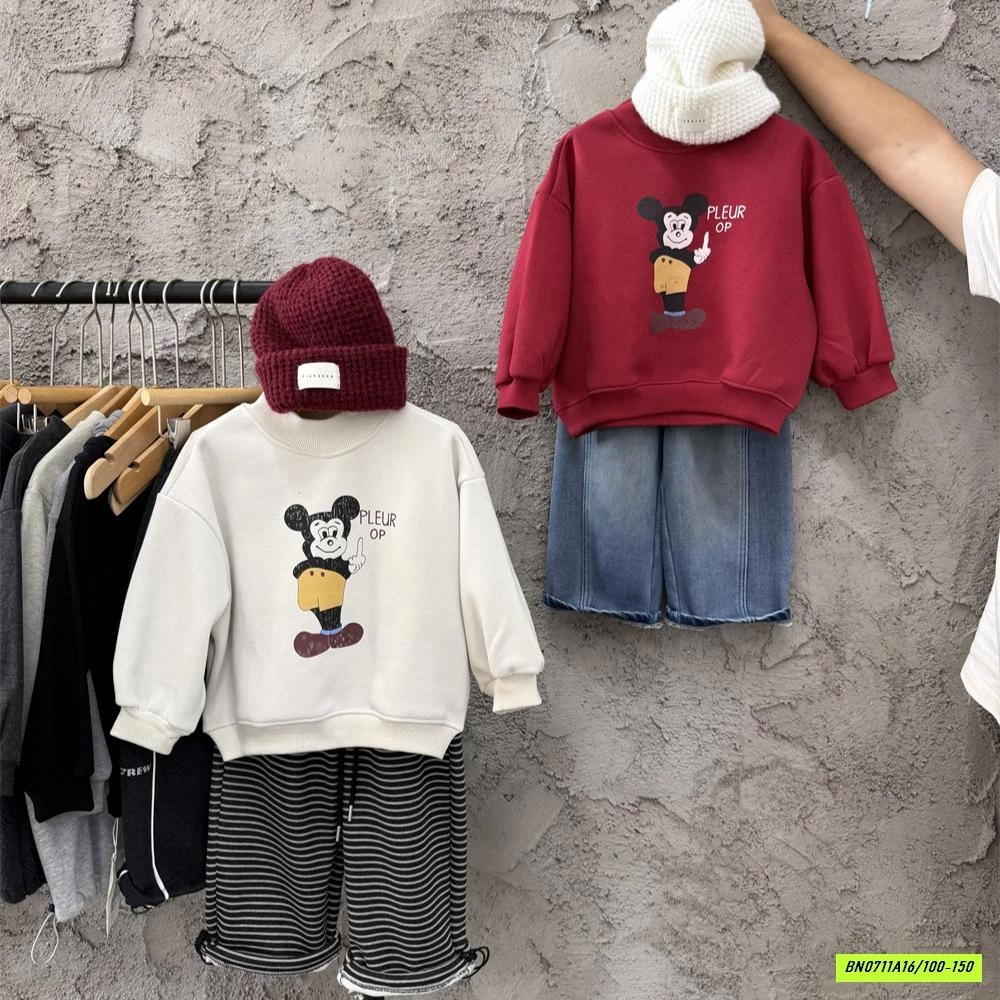 ÁO NỈ MICKEY CỔ 3P LÓT LÔNG CỪU muộn