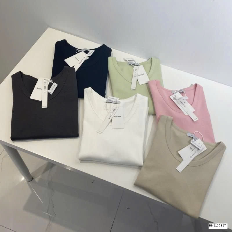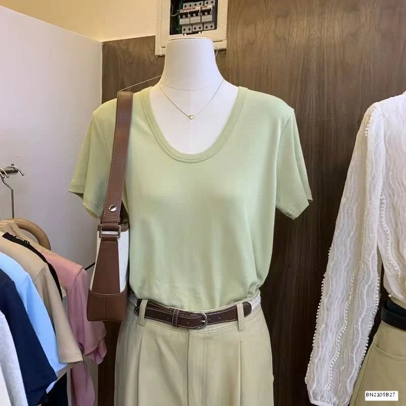 ÁO THUN CỘC TAY CỔ TRÒN NỮ muộn