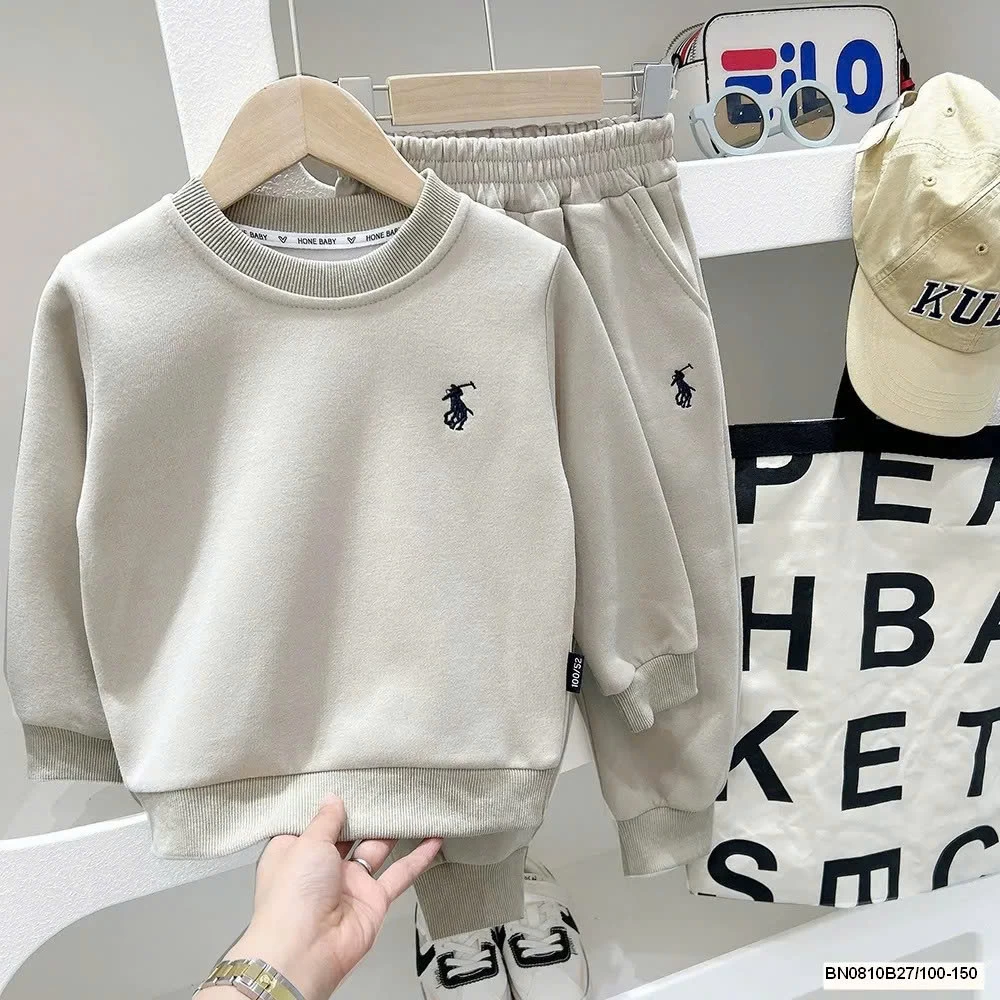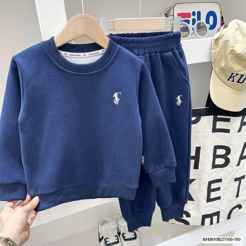 BỘ NỈ TRƠN MÀU THÊU LOGO NGỰA