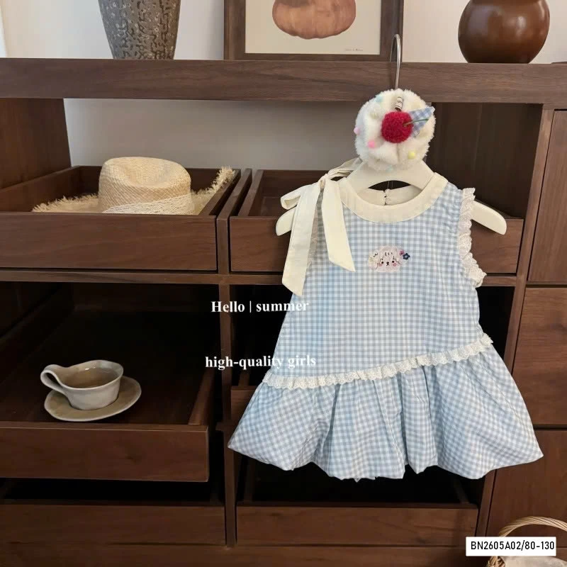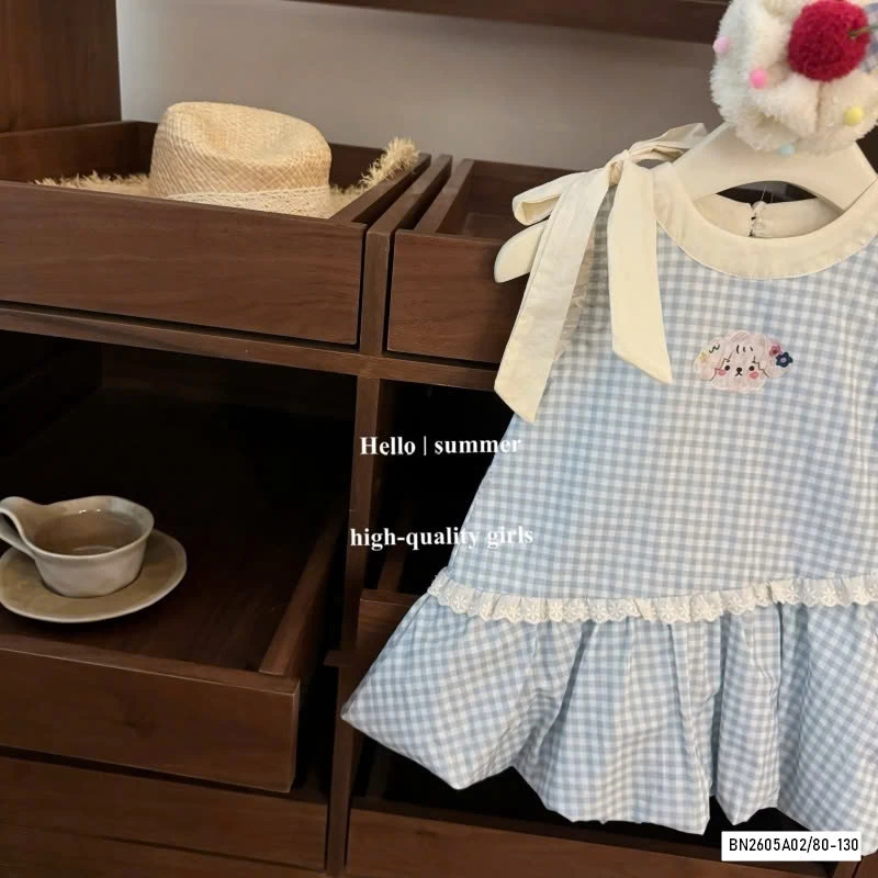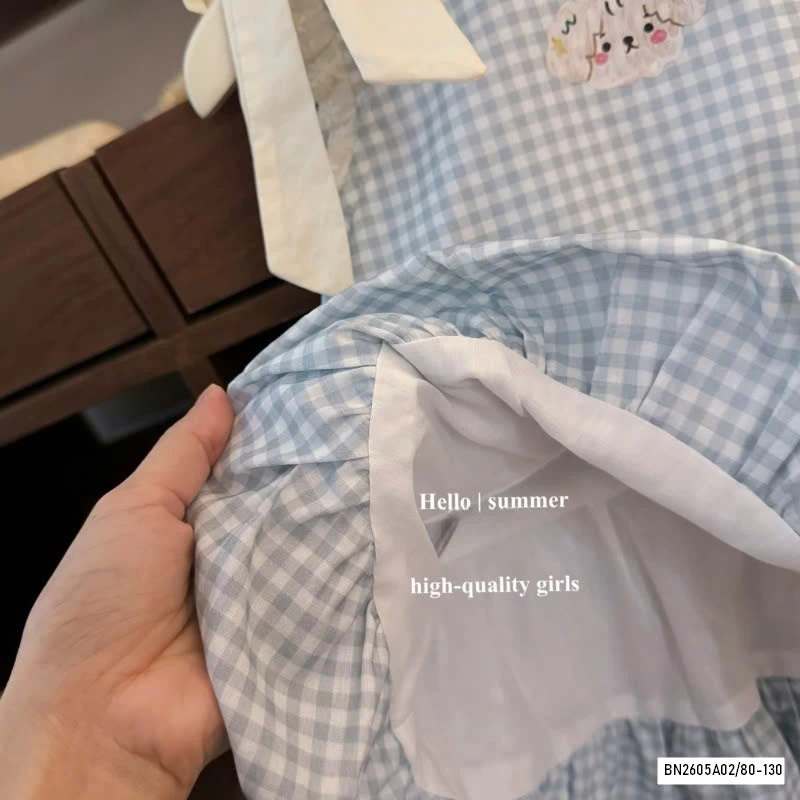 ĐẦM BÍ CARO XANH BUỘC NƠ VAI