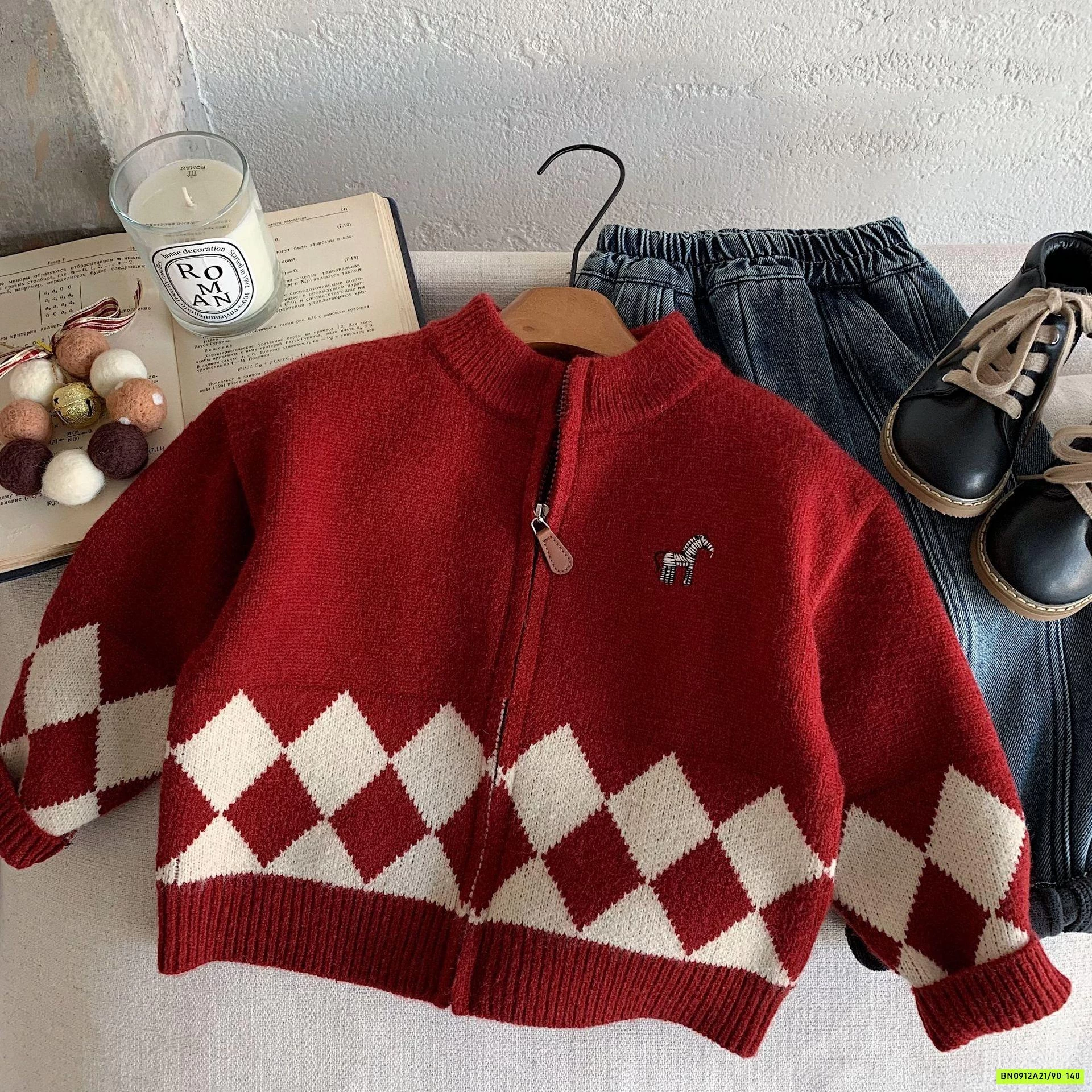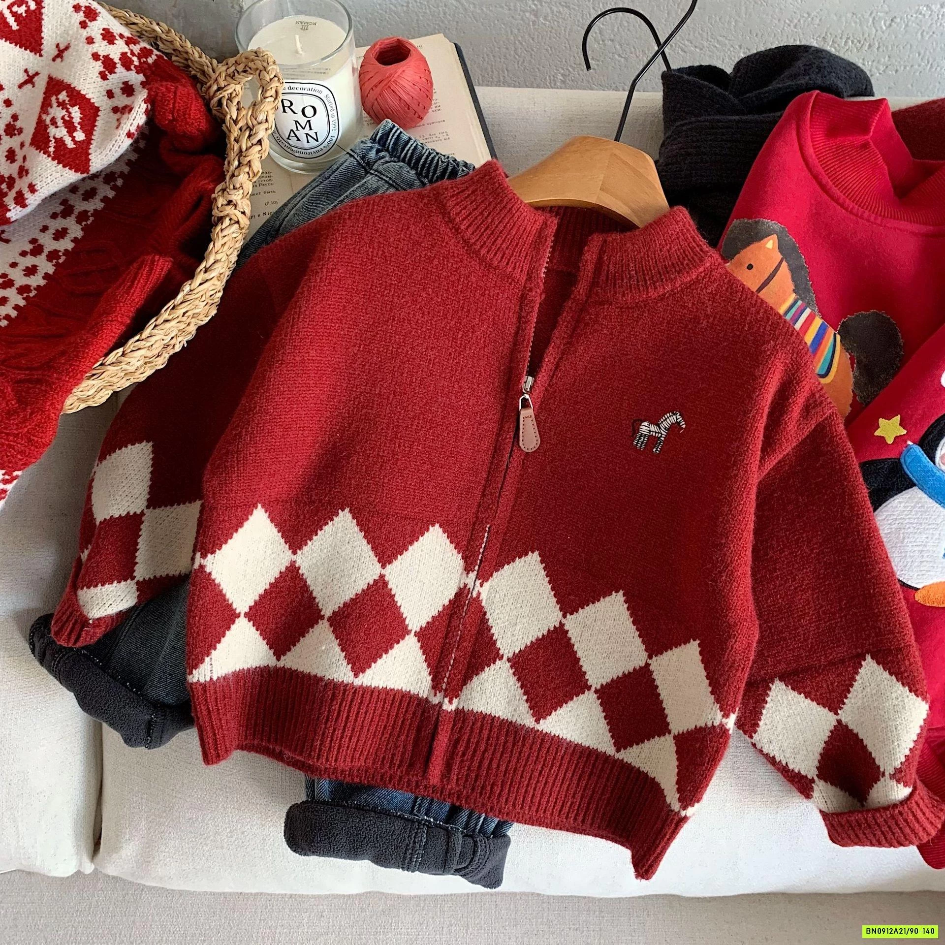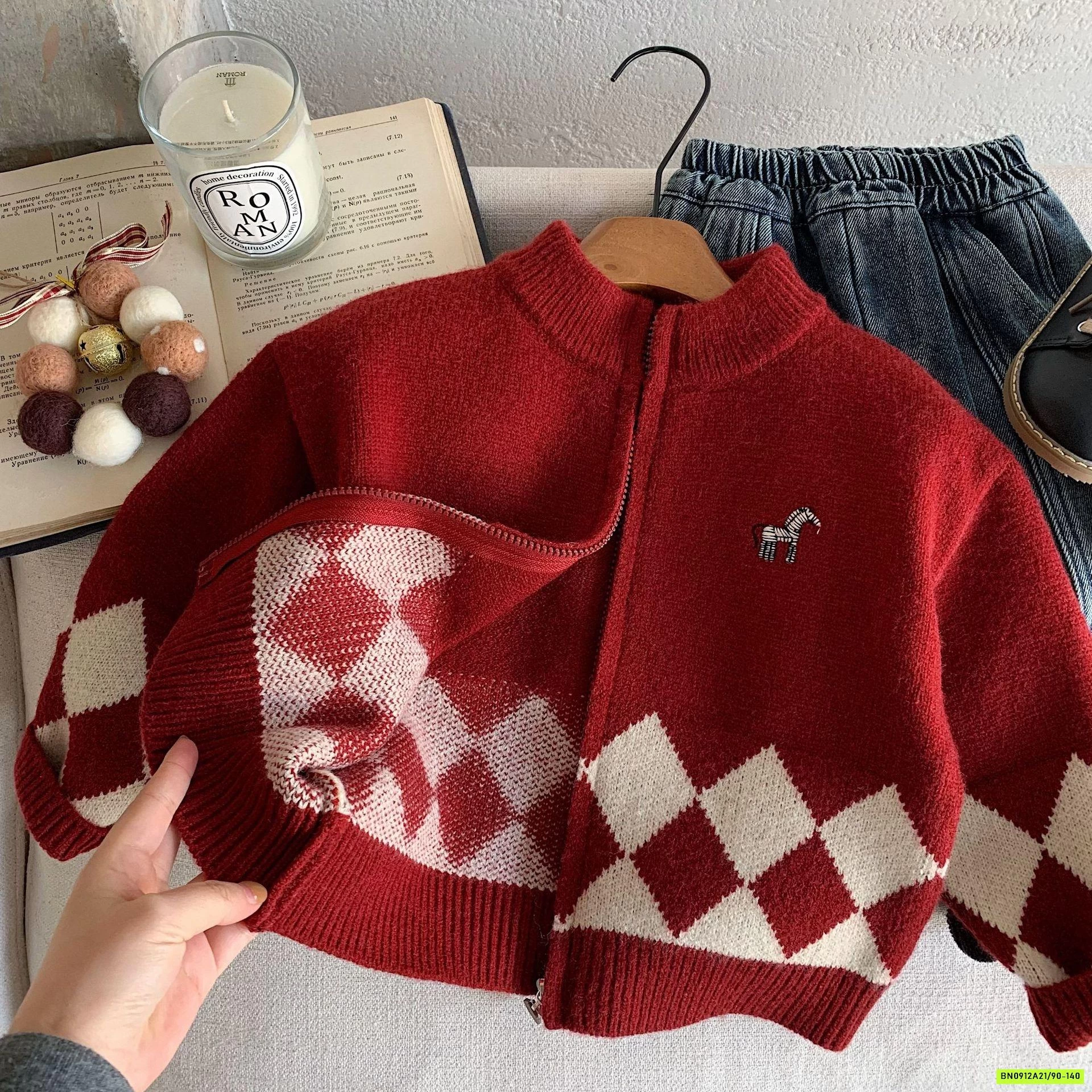 KHOÁC LEN ĐỎ KHÓA KÉO THÊU LOGO NGỰA