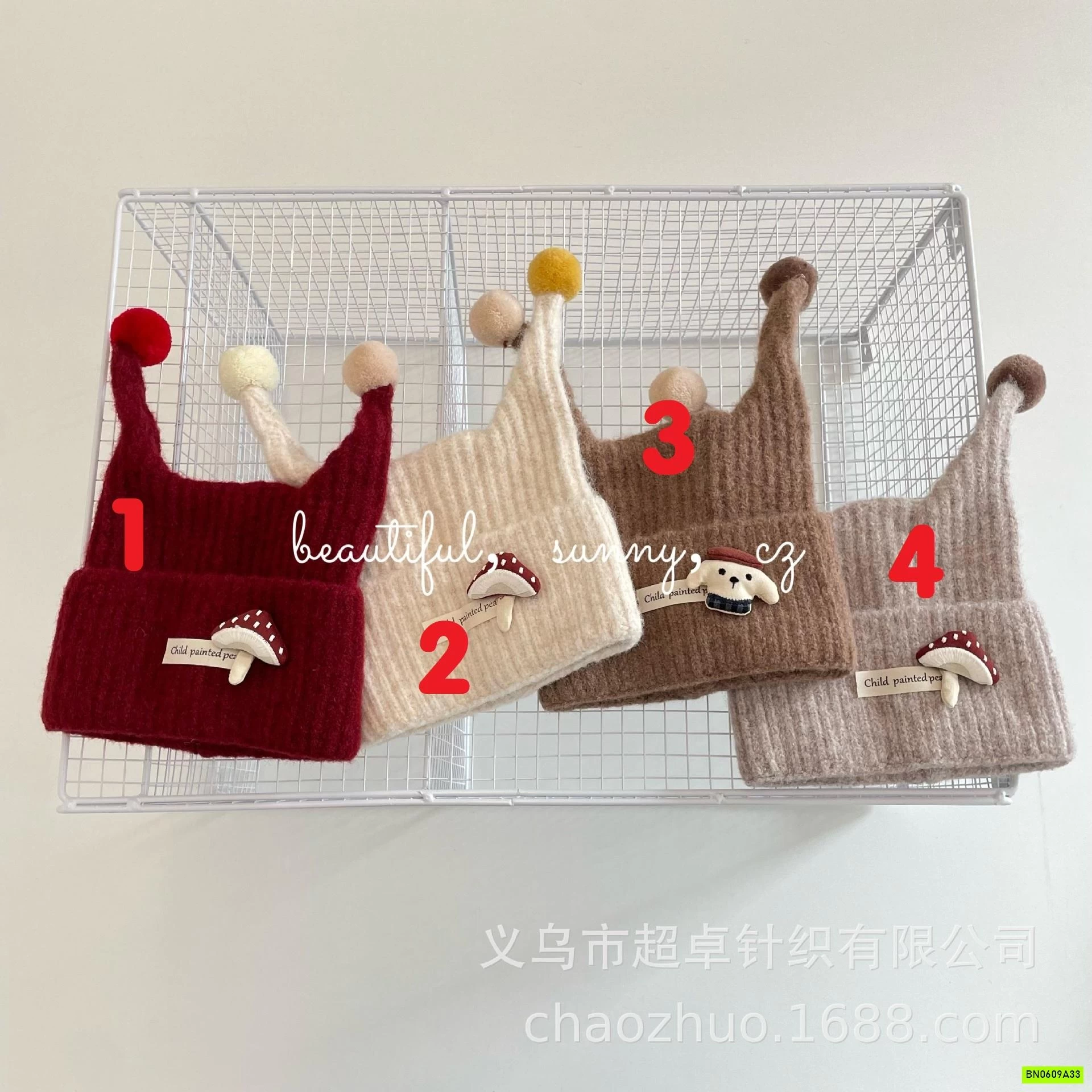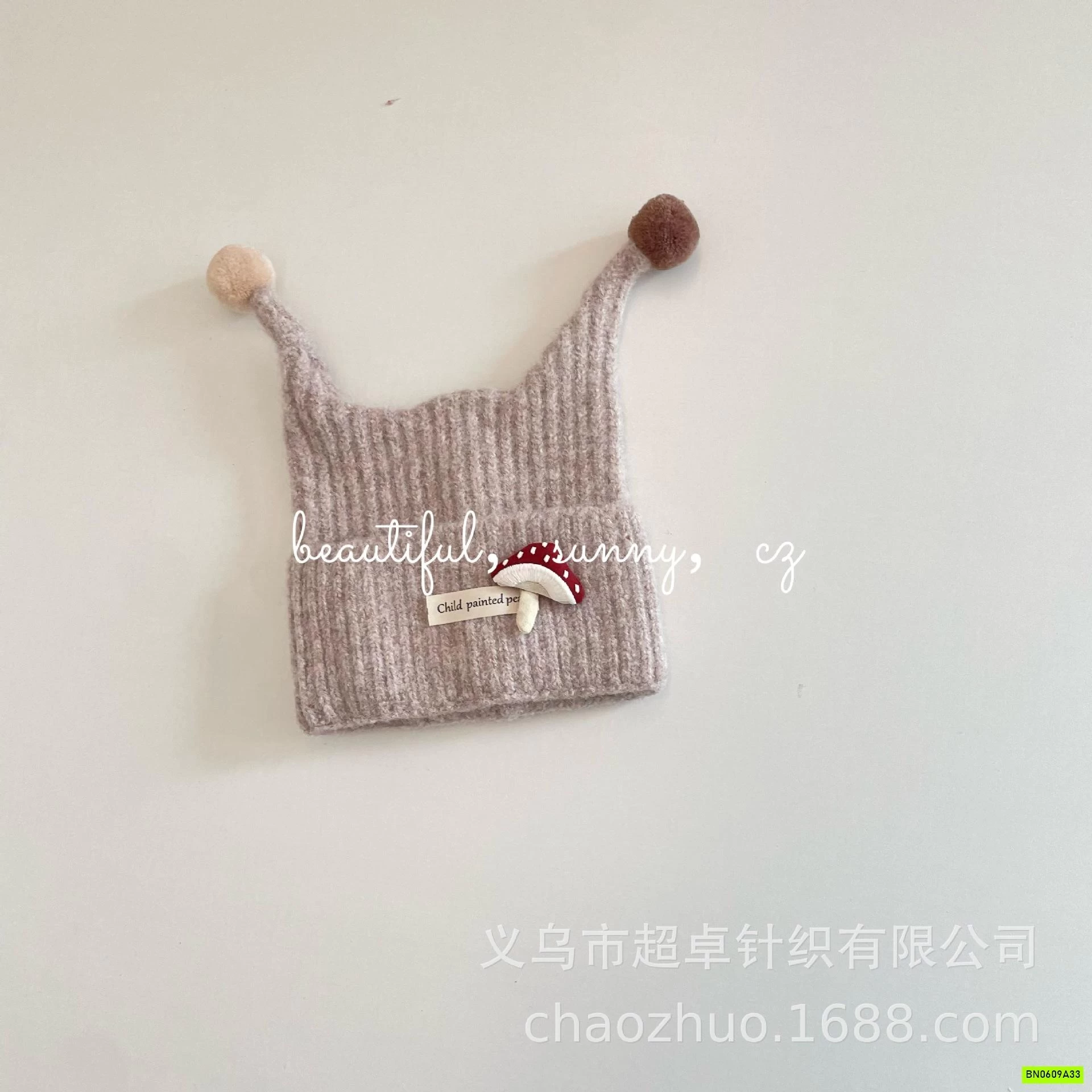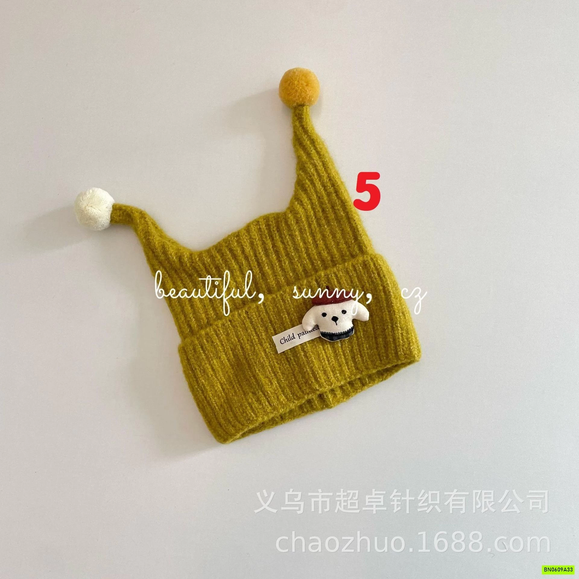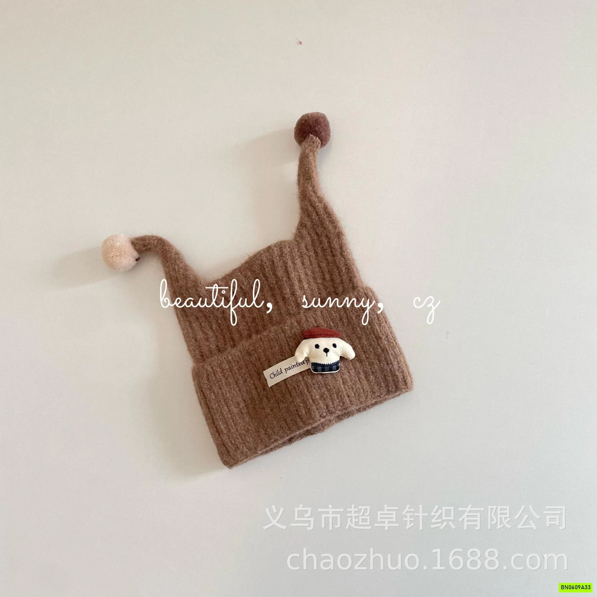 MŨ LEN 2 TAI GẮN THÚ BÔNG