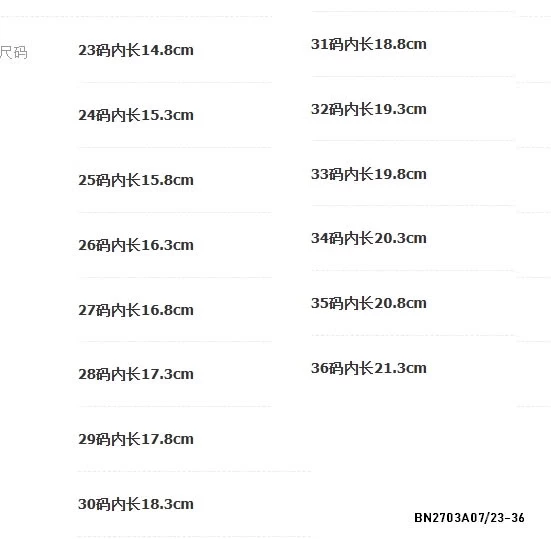 - size 23-36