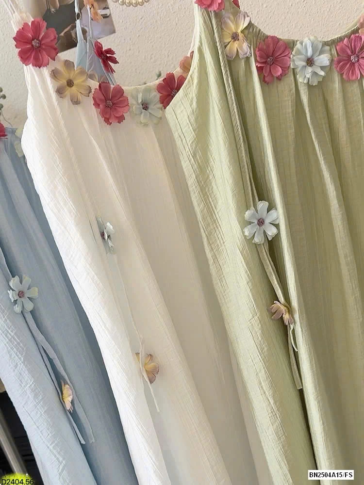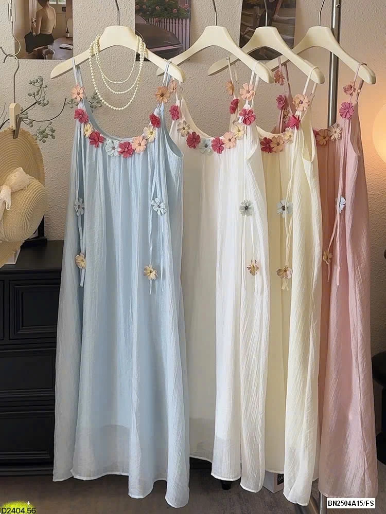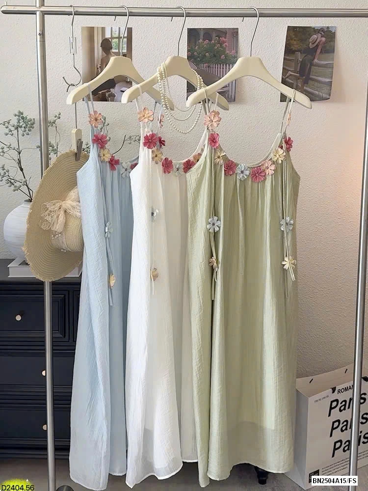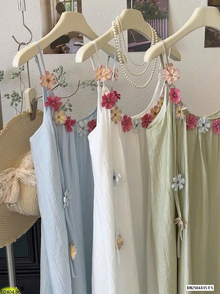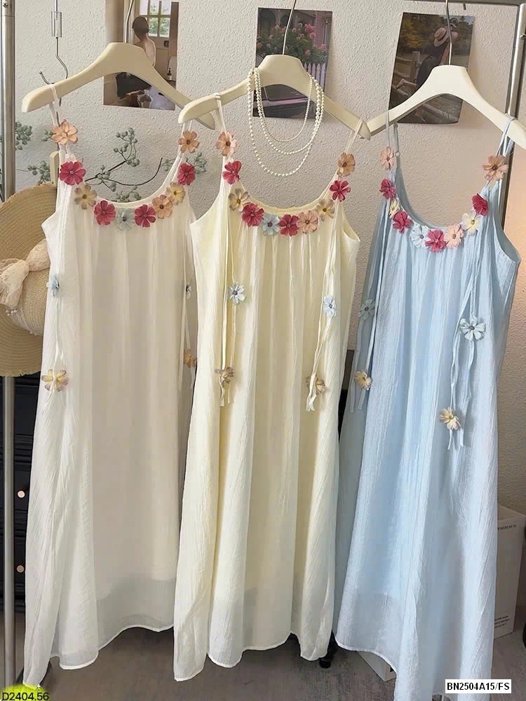VÁY 2 DÂY ĐÍNH HOA SẮC MÀU HÃNG ANNA