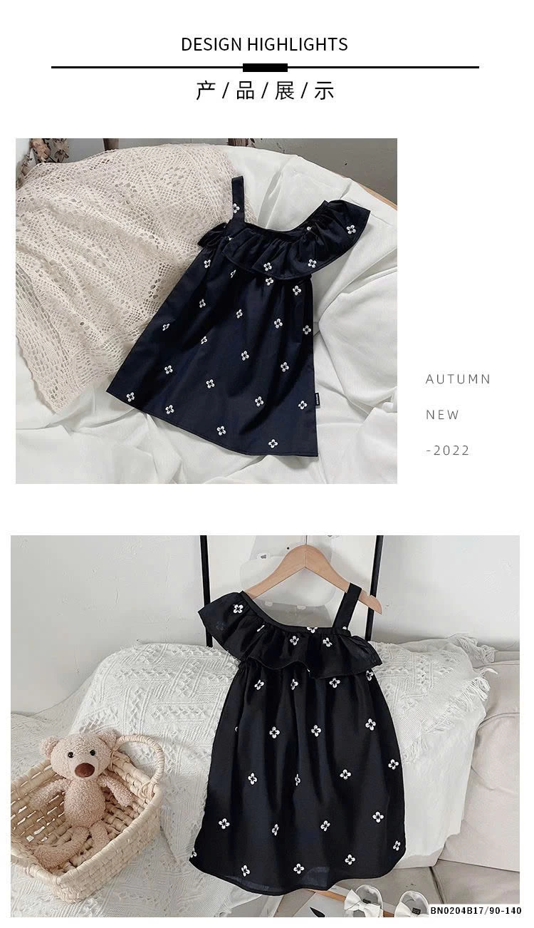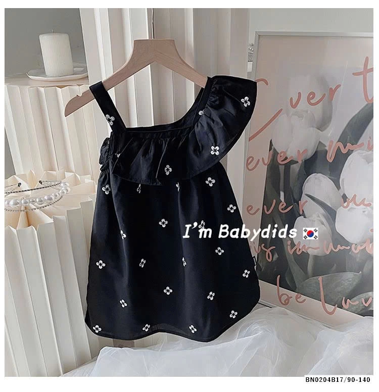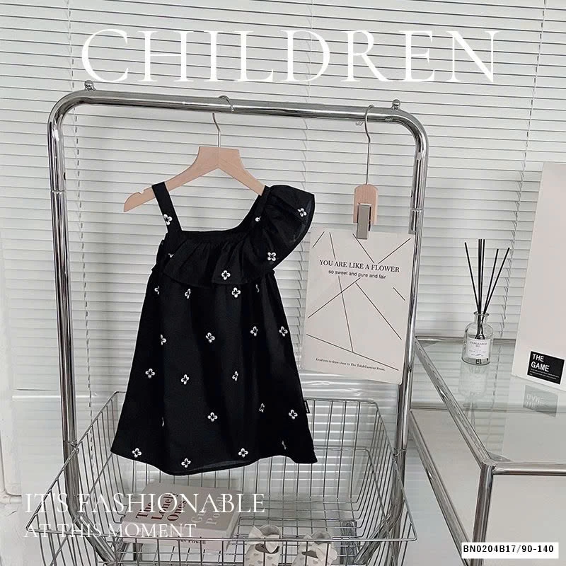 VÁY HOA LỆCH VAI CHO BÉ GÁI muộn